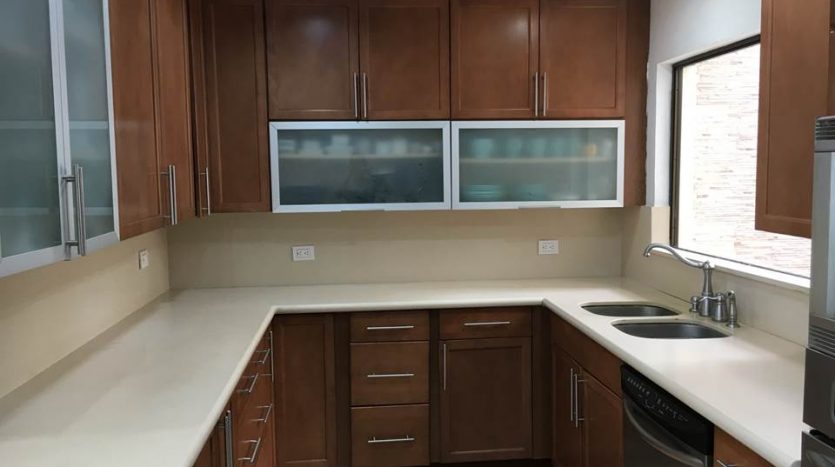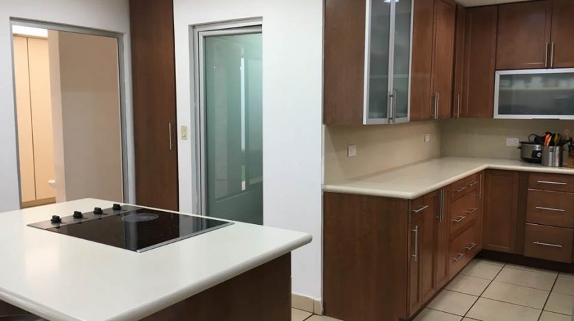 En el primer nivel nos encontramos espacios amplios y cómodos , abierto hacia el jardín para generar para así tener luz natural y excelente ventilación,incluye exquisito mobiliario de madera, tal como un bar completo con sobre de granito.La cocina con piso de cerámica y sobres de granito está equipada con línea blanca completa: torre de hornos (convencional y microondas),lavaplatos, refrigerador y plantilla eléctrica. Cuenta con mucho espacio de almacenaje y con una despensa walk-in