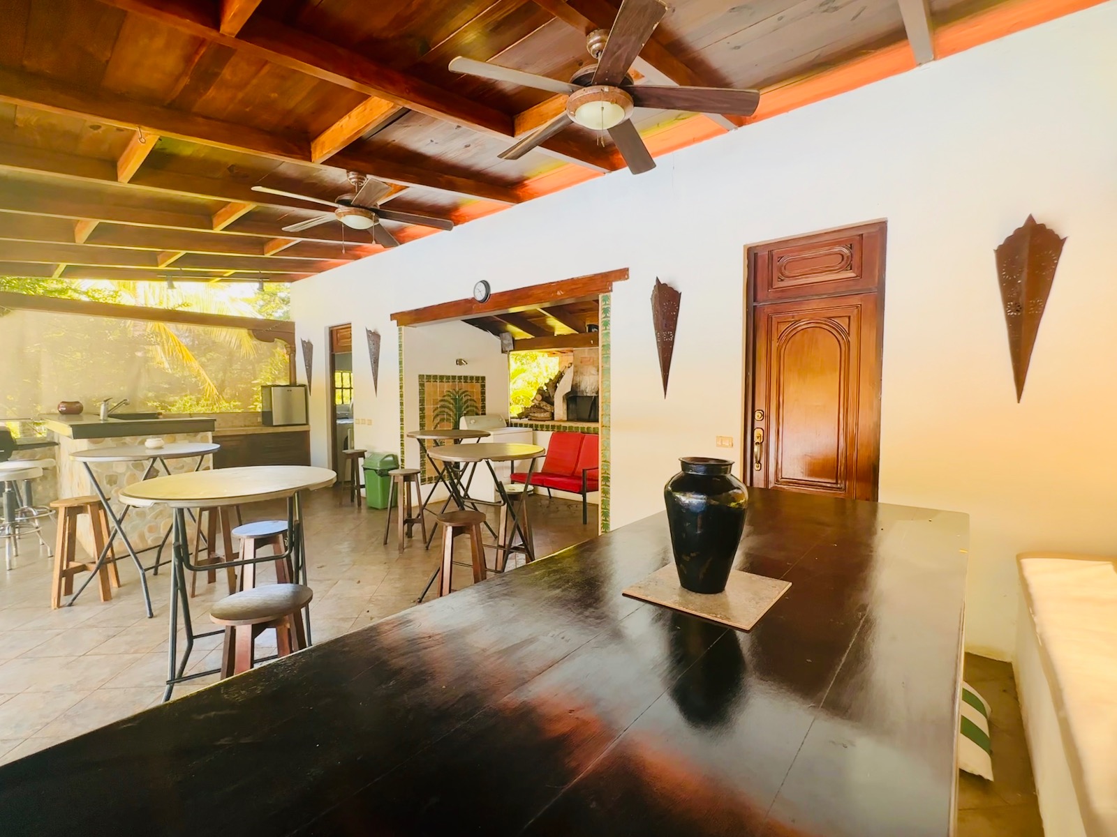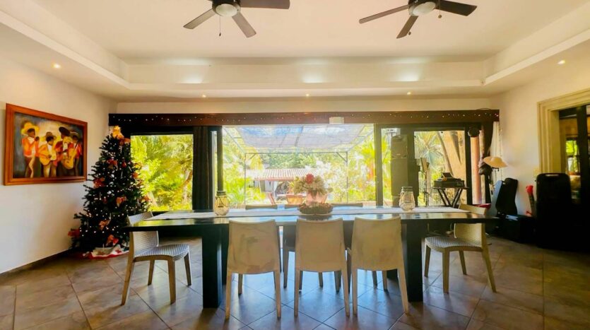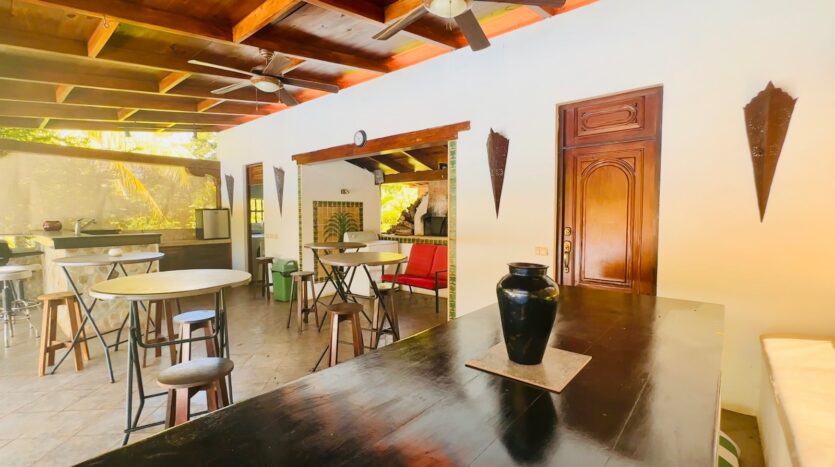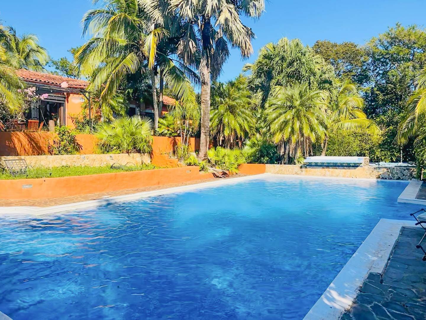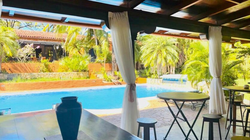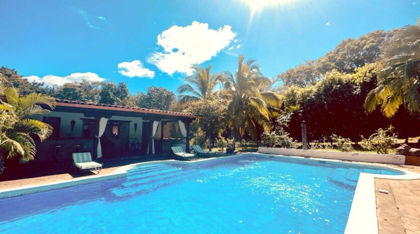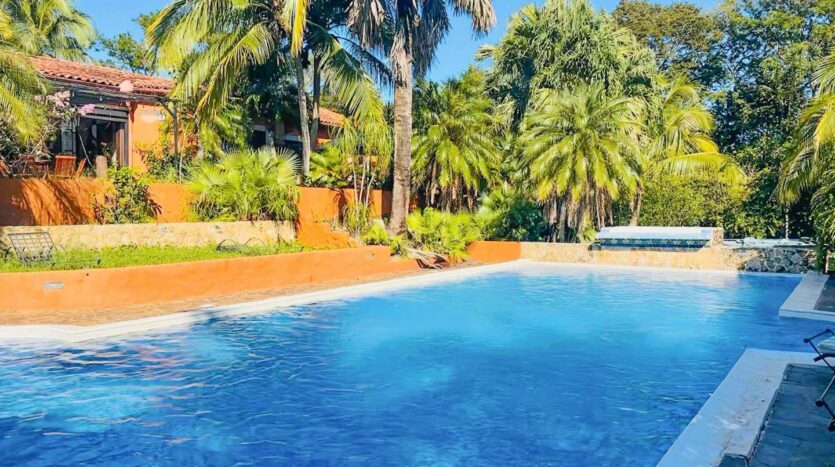 • Casa Principal: 3 dormitorios, 3.5 baños, cocina, sala de TV, comedor y piscina en la planta principal.
