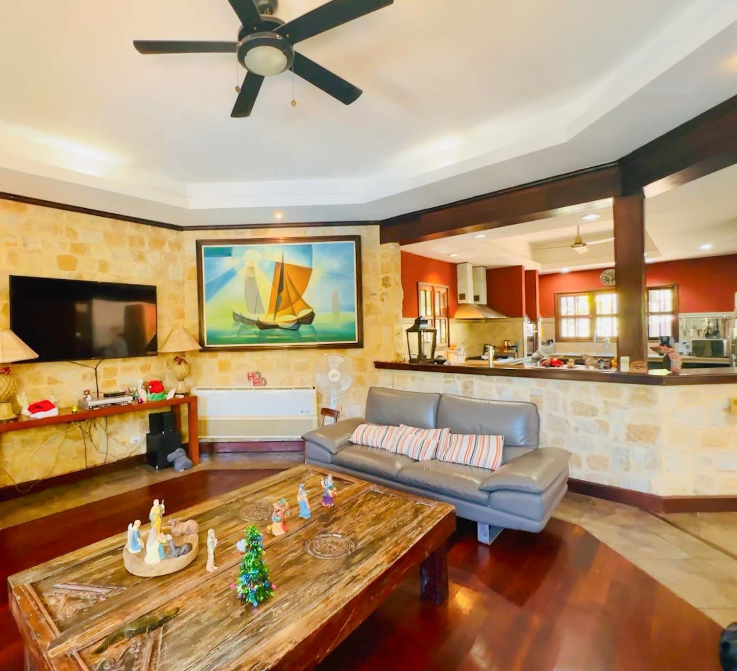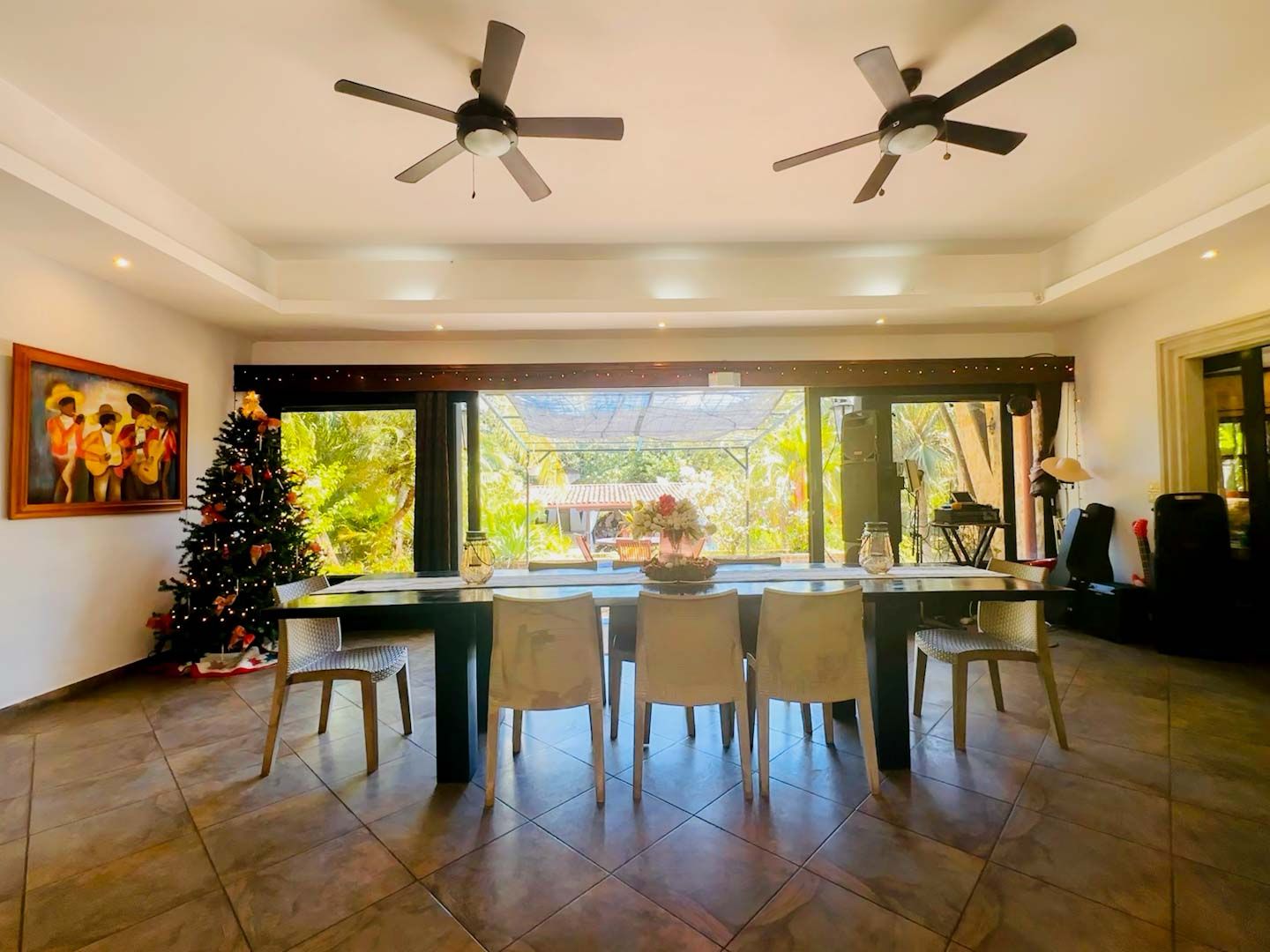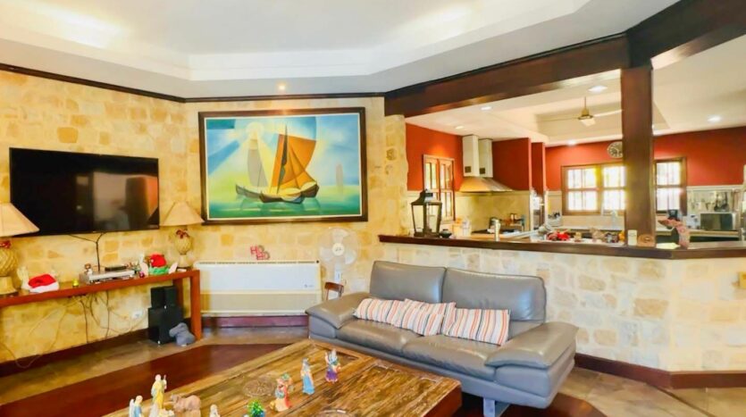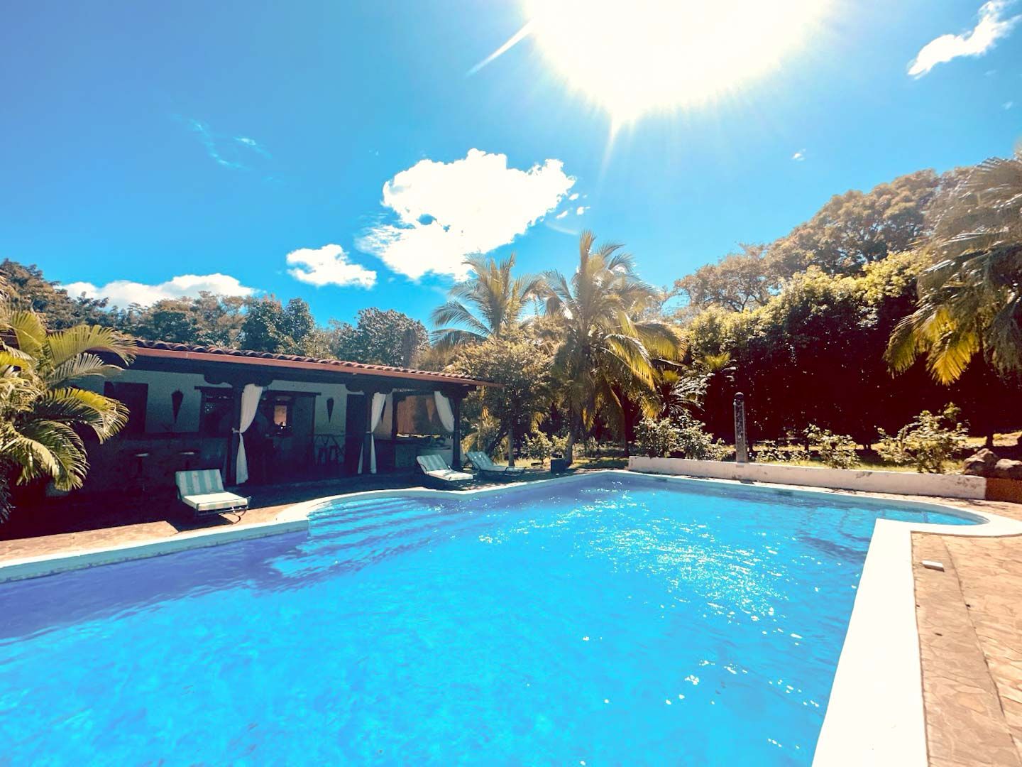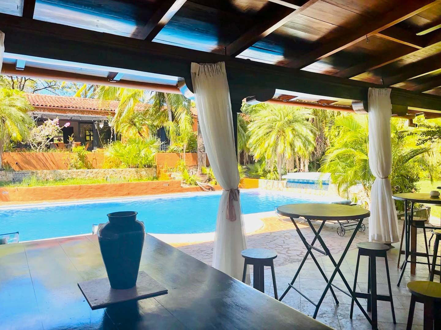 • Casa Principal: 3 dormitorios, 3.5 baños, cocina, sala de TV, comedor y piscina en la planta principal.