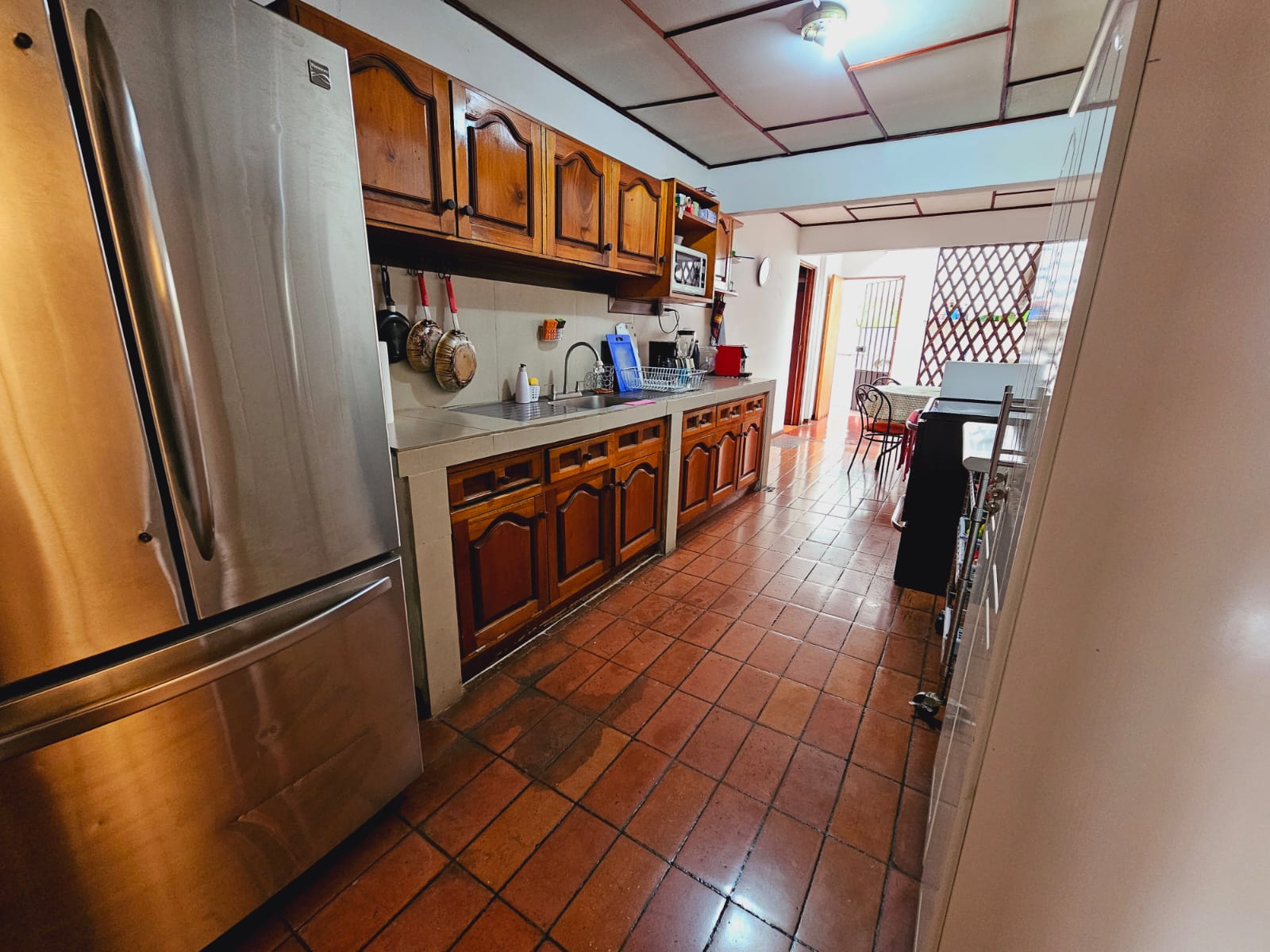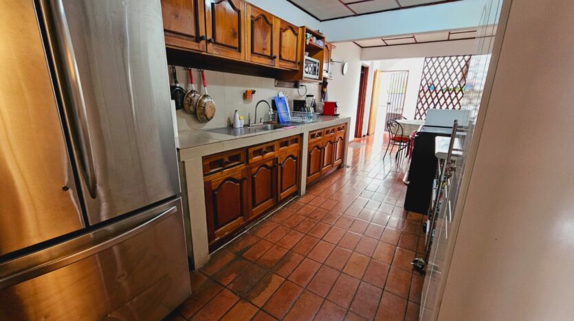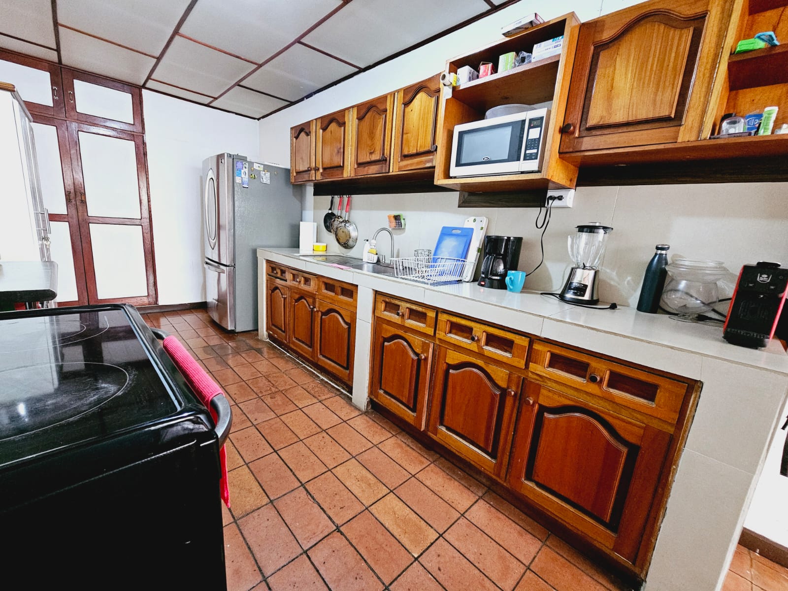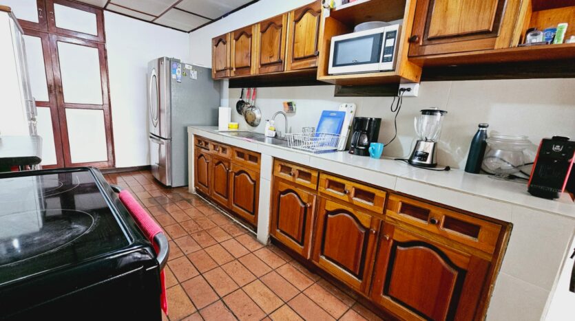 - Cocina con mueble de madera sólida.