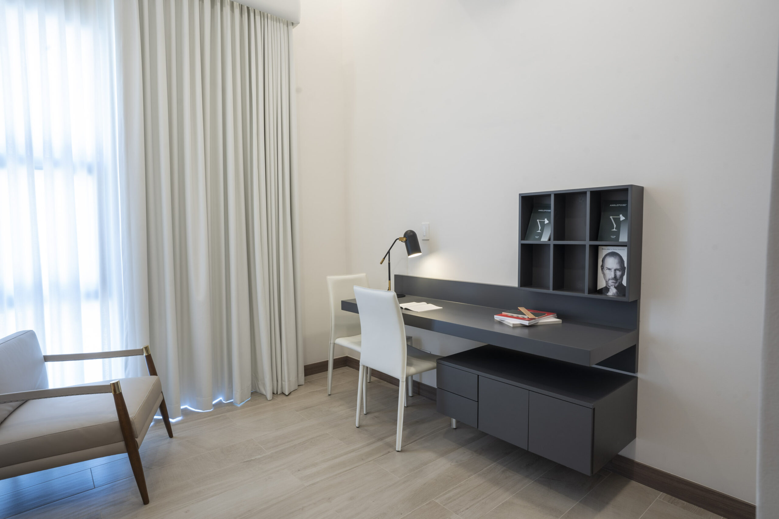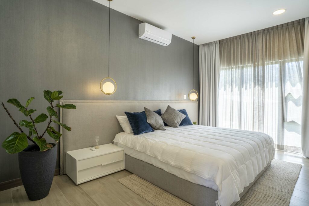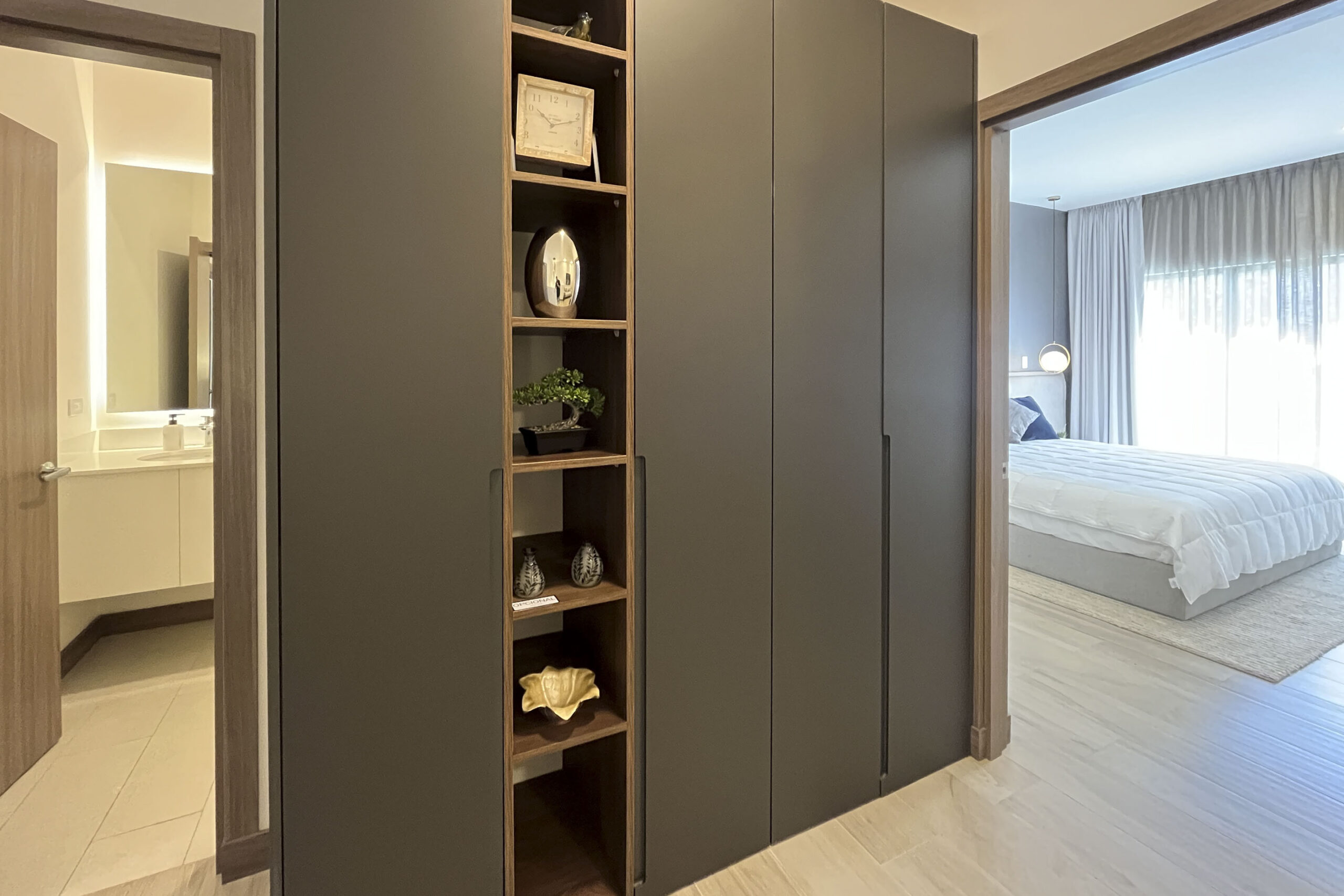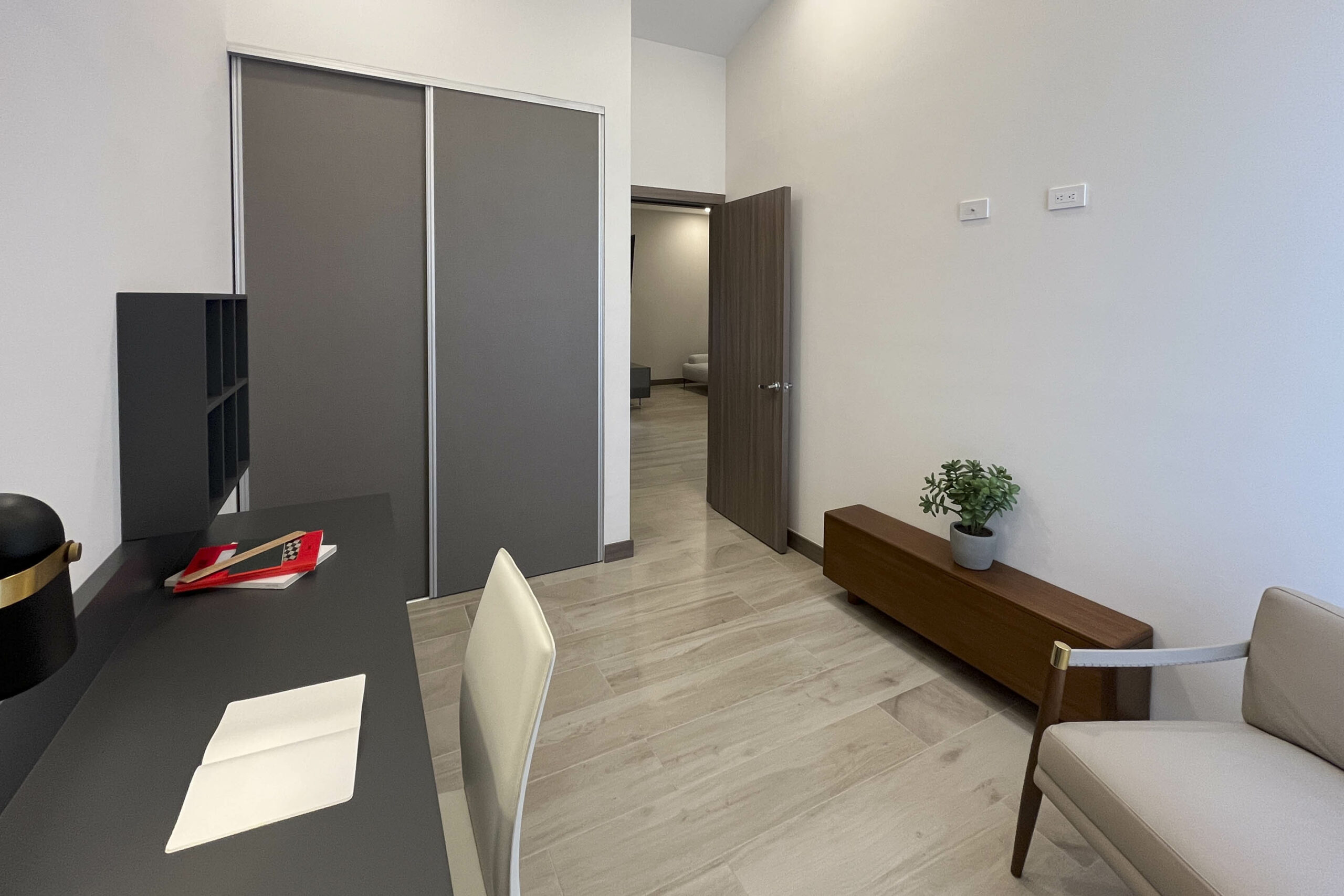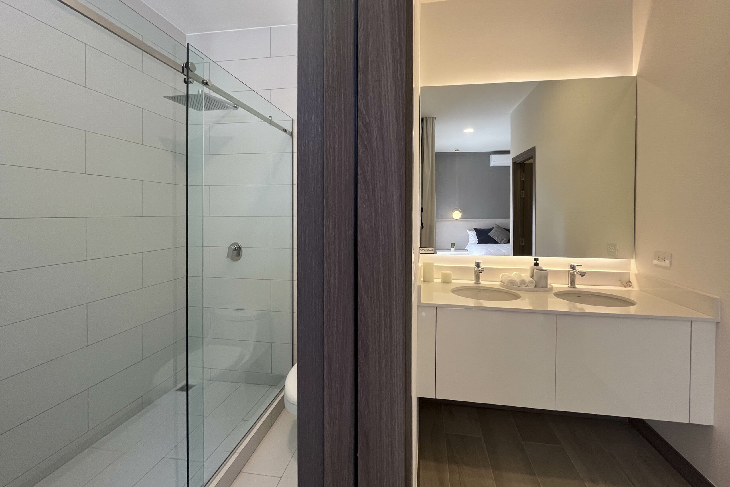 Dispone de 2 habitaciones secundarias compartiendo un baño completo, mientras la habitación principal cuenta con baño privado y walk in closet, en esta habitación destaca su espacio, apto para cama king, muebles de noche y muebles de t.v.