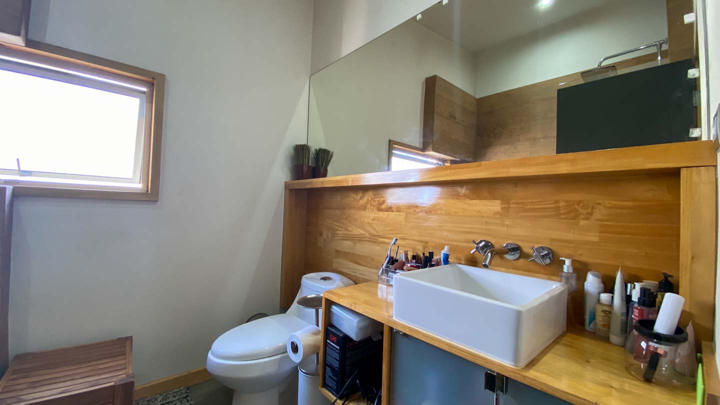 En el nivel de calle, disfruta de una cochera para 2 vehículos y una bodega. Al acceder al primer nivel, te recibe una entrada peatonal hacia la puerta principal. Explora una hermosa cocina con muebles de madera y granito, integrada con el comedor y la sala. Además, aprecia atardeceres inolvidables desde el espectacular balcón. Completa tu experiencia con un jardín lateral y un práctico medio baño de visitas. 🌅🌺