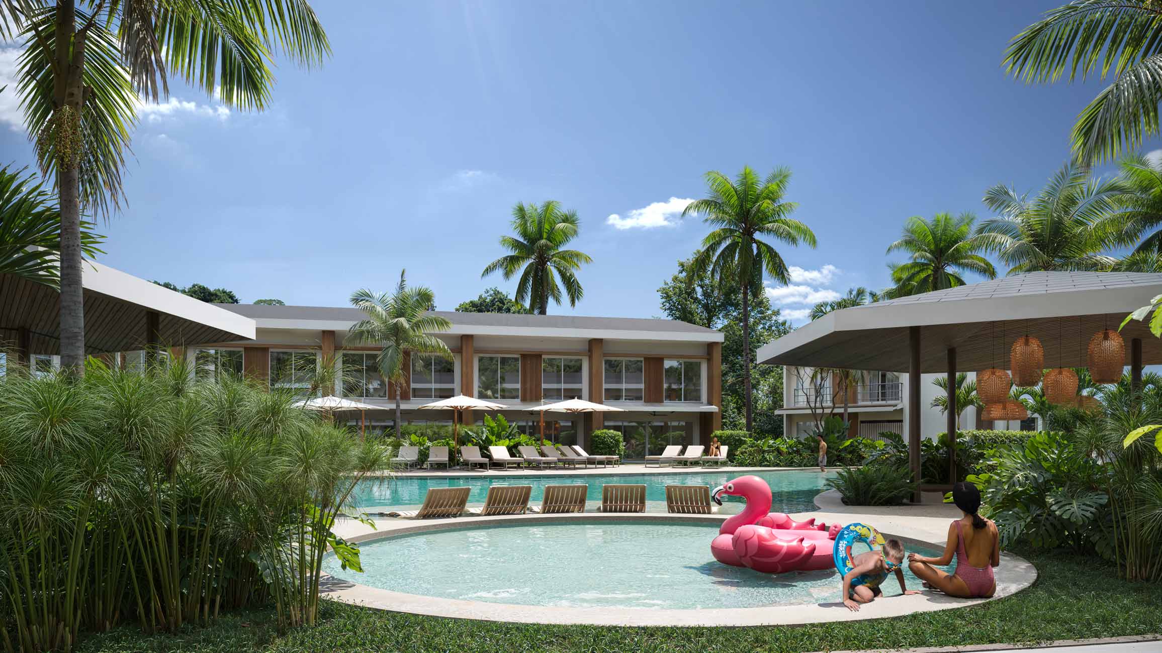 También hay disponibles apartamentos con 2 habitaciones y 2 baños, ideales para quienes buscan mayor amplitud y comodidad, así como exclusivas villas tipo resort frente al mar con terrazas privadas.