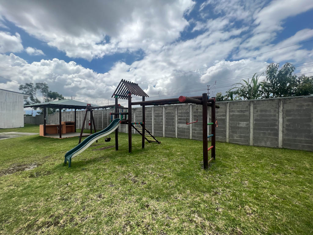 Construido en el año 2019, tiene 2 pequeños ranchos, 2 parques de niños, zona verde y seguridad 24/7. Cuota condominal ¢56,000