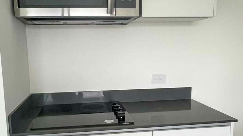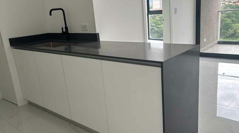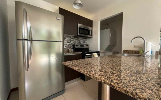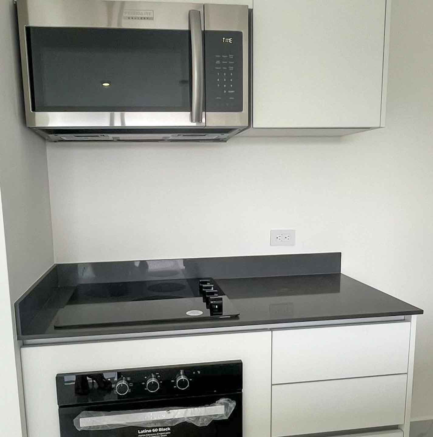 Este apartamento de 42 m² de construcción (57 m² totales) destaca por su diseño contemporáneo, iluminación natural y acabados de primera calidad. Su cocina está equipada con horno microondas, plantilla eléctrica, horno convencional y cortinas tipo blackout, brindándole confort y eficiencia en cada detalle.