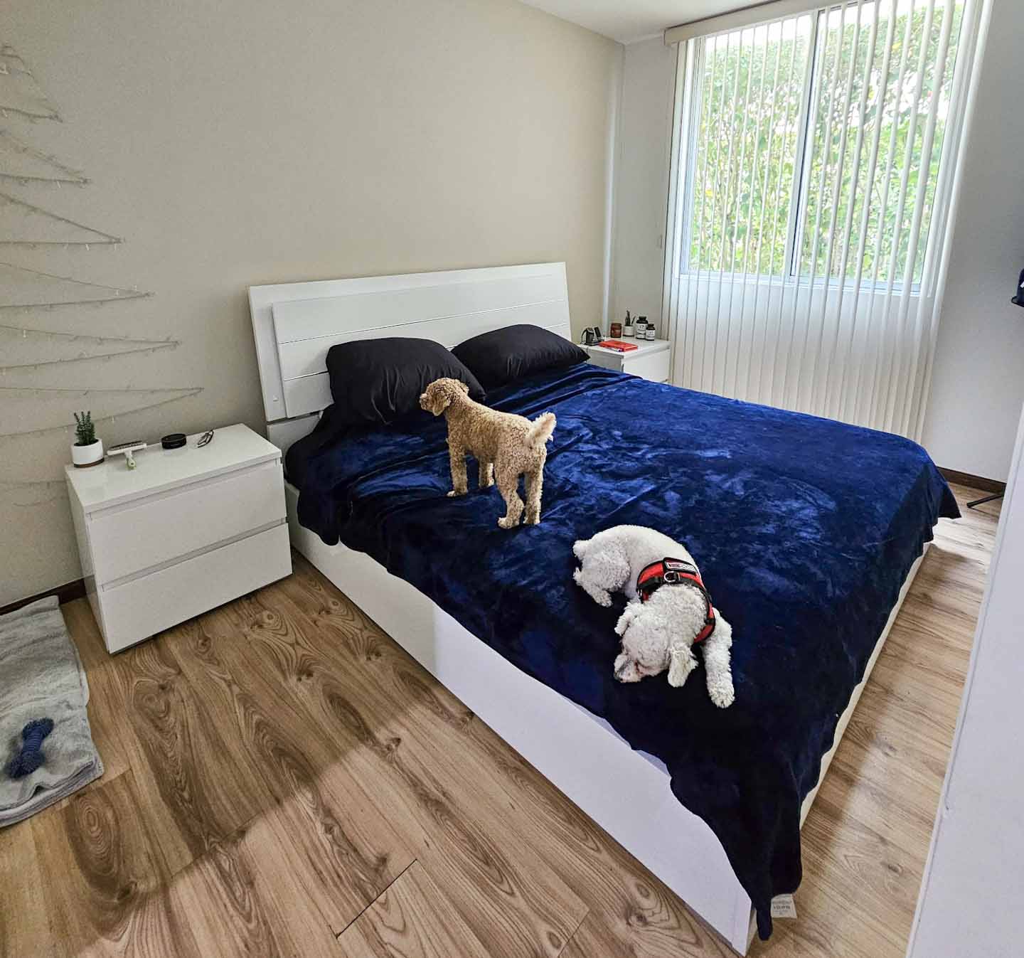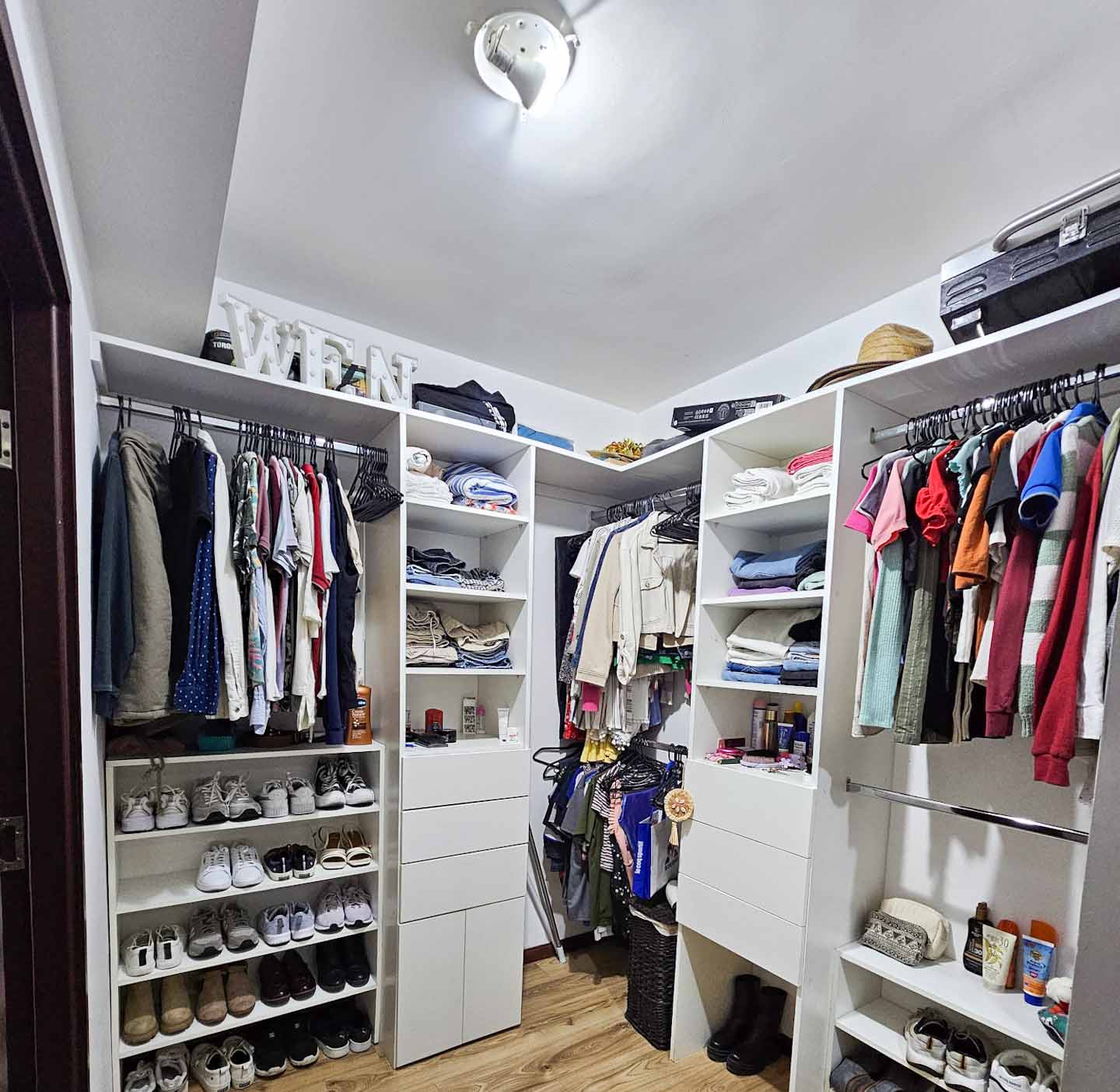 - 1 habitación con espacio para cama king, mesas de noche y un walking closet remodelado.