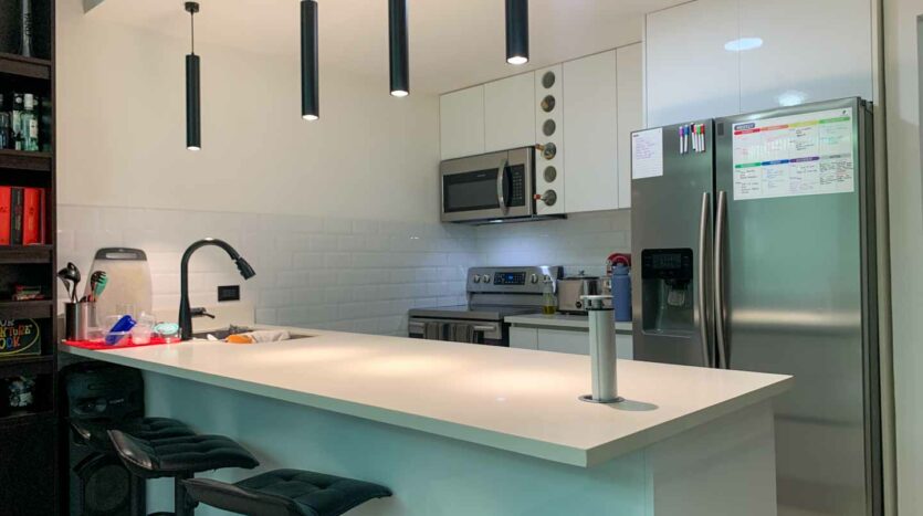 - Cocina moderna, remodelada con finos acabados y amplio almacenamiento.