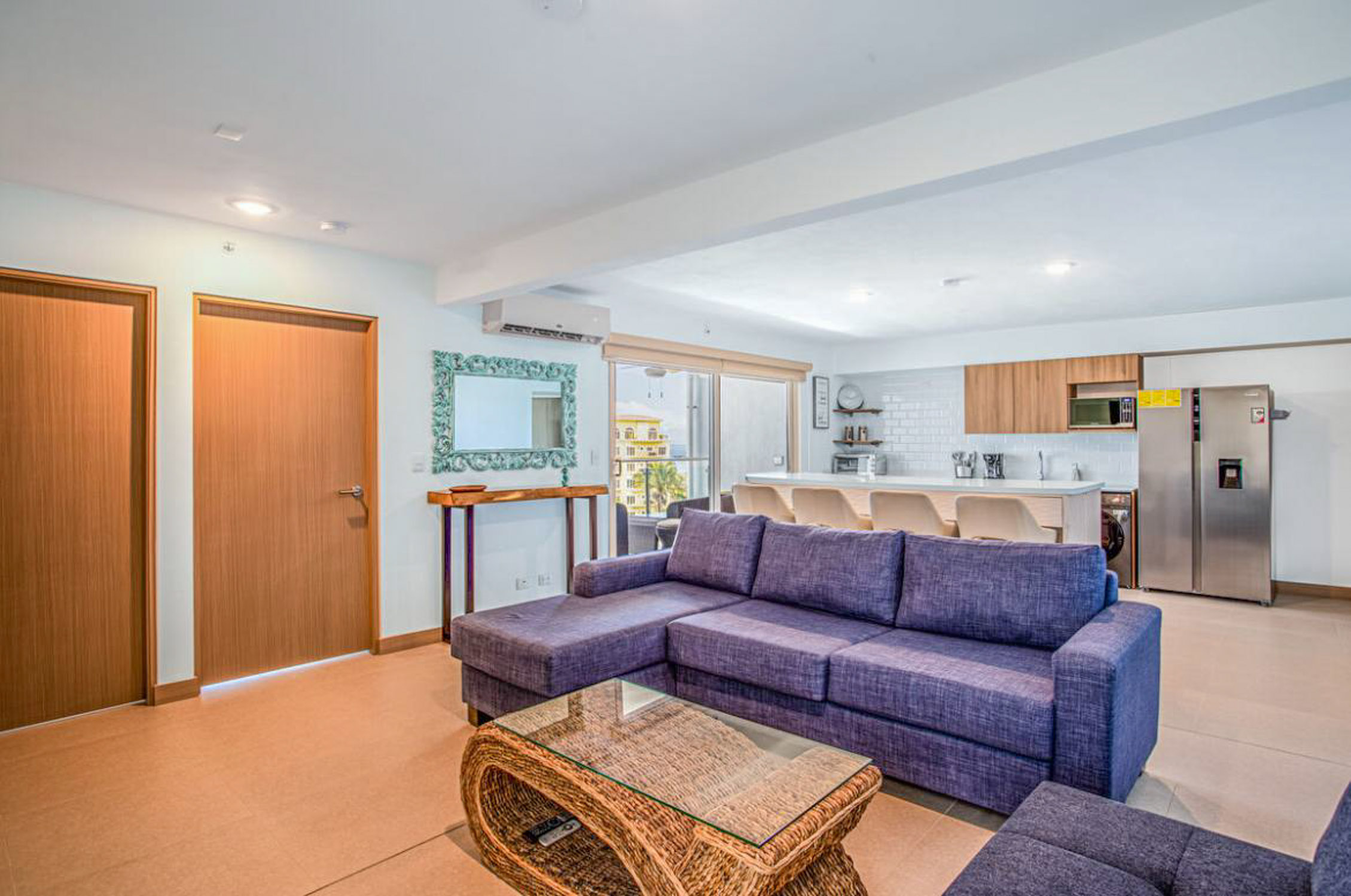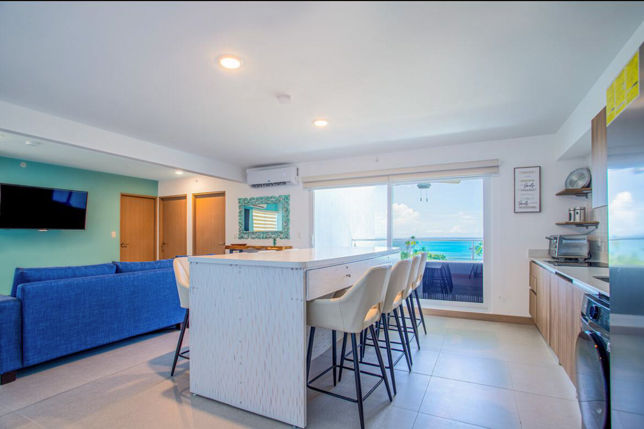 • Sala–comedor de concepto abierto que se integra a un balcón con vista frontal al mar