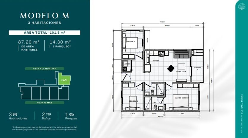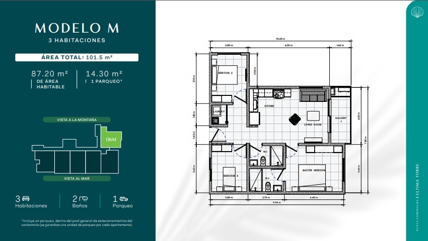 Viva y/o invierta en Punta Esmeralda, Punta Leona: un condominio de torre con amenidades tipo resort y operación sencilla. Esta unidad en Torre 2, piso 6 destaca por su vista a montañas y su precio rebajado.