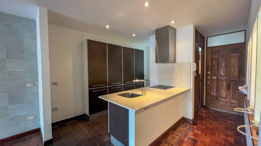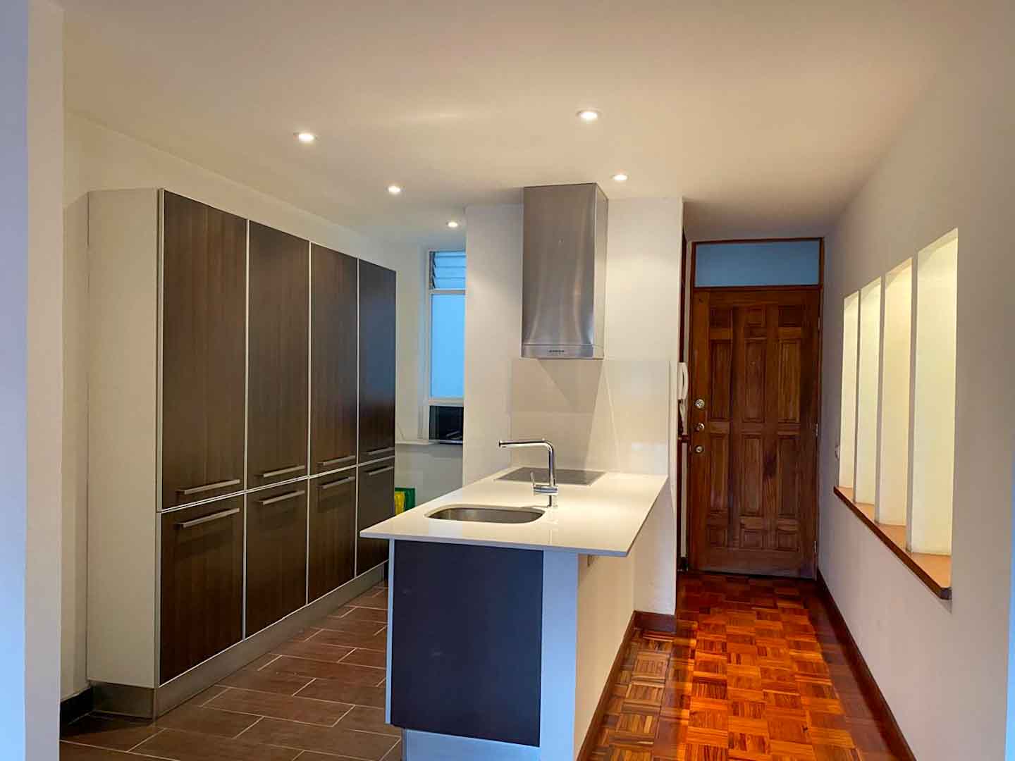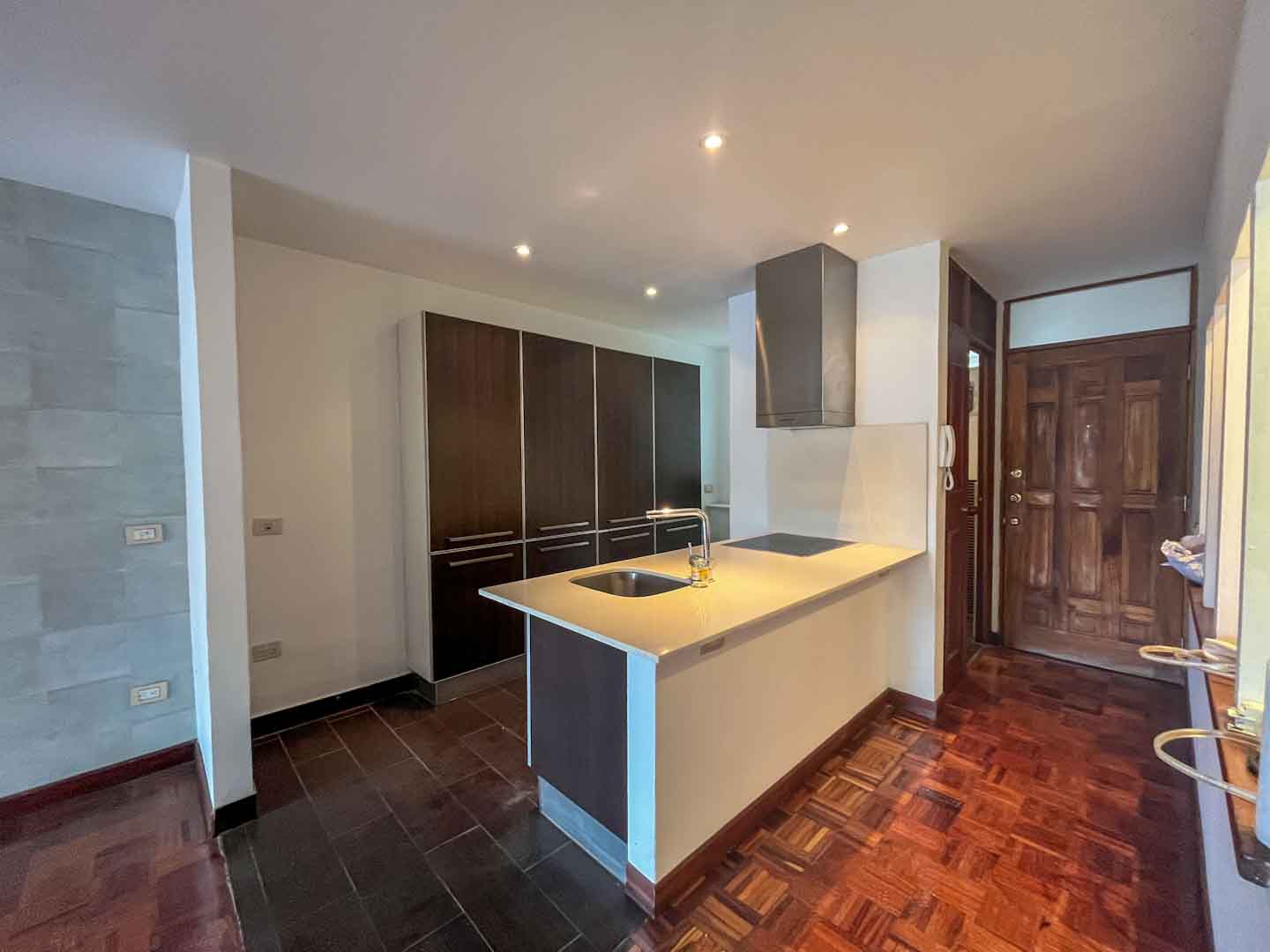 Cocina remodelada con muebles modernos y finos acabados, incluye lavaplatos, vitrocerámica, extractor y microondas