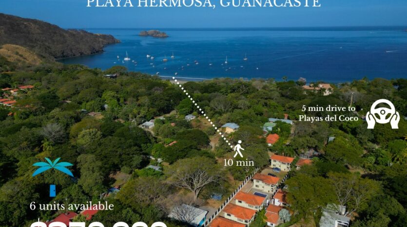 Ubicado en Playa Hermosa, este condominio ofrece una proximidad inigualable a todo lo que necesitas. A pocos pasos de la playa, cada apartamento cuenta con: