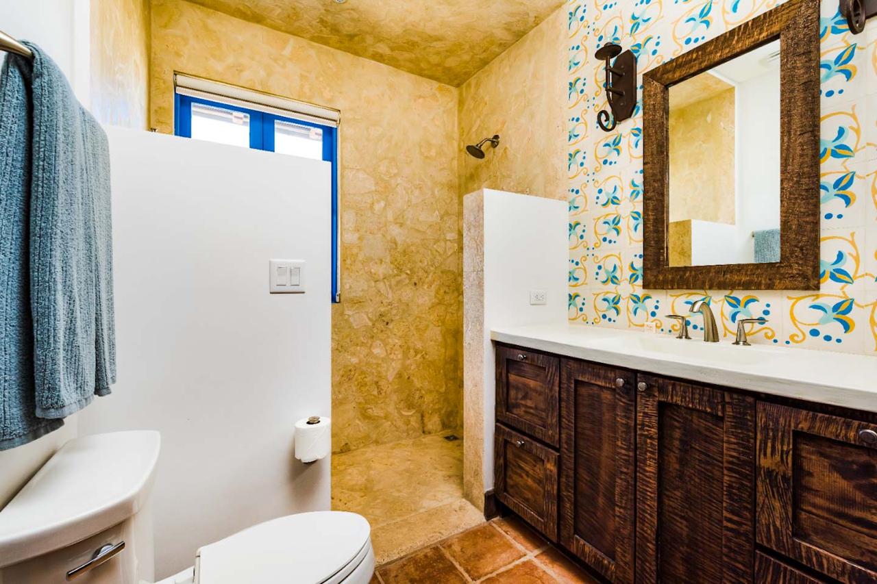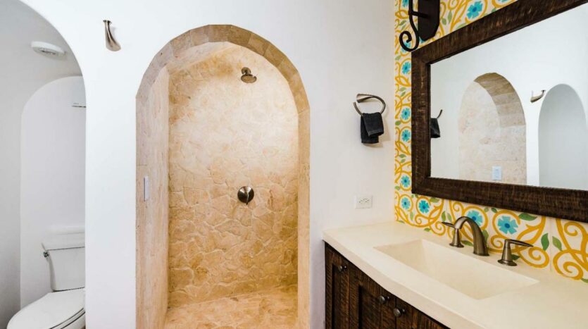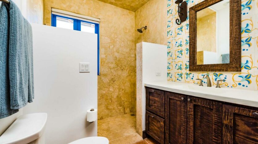 Both the guest and master bedrooms have ensuite bathrooms for added convenience, with the master bedroom featuring a balcony with ocean views. From here, residents can enjoy panoramic views of Calle Cartagena and the beautiful Islotes Pitahayas.