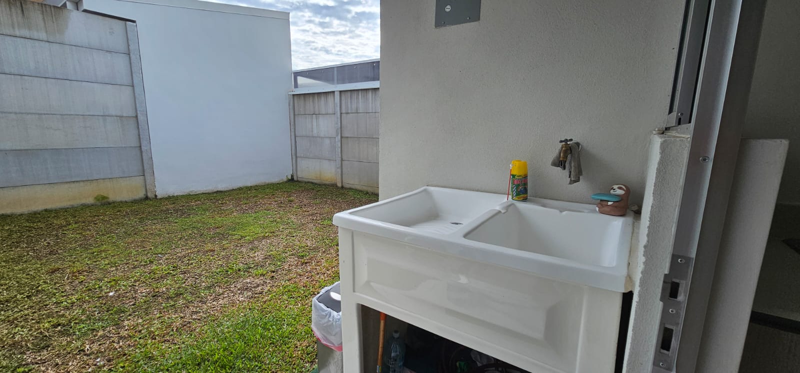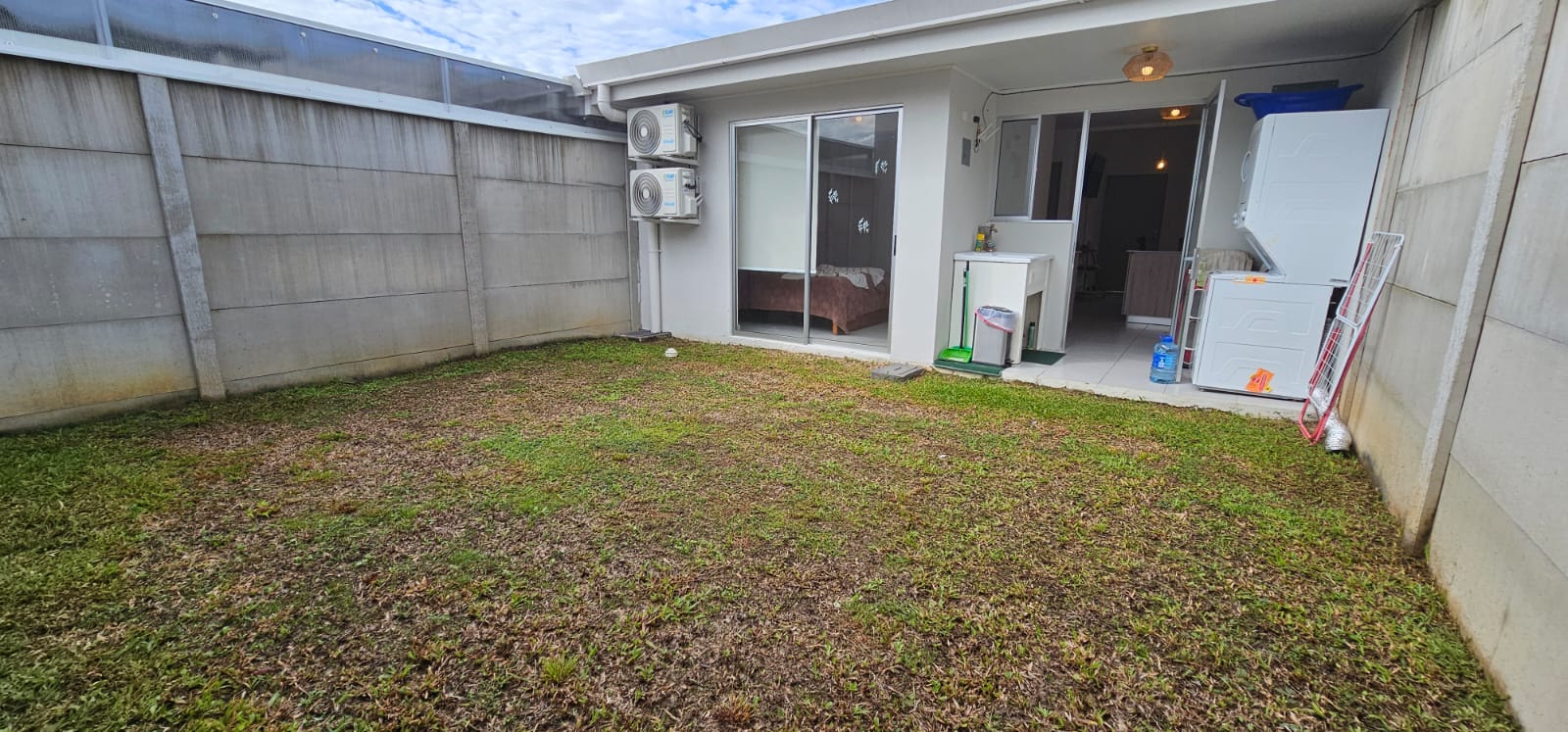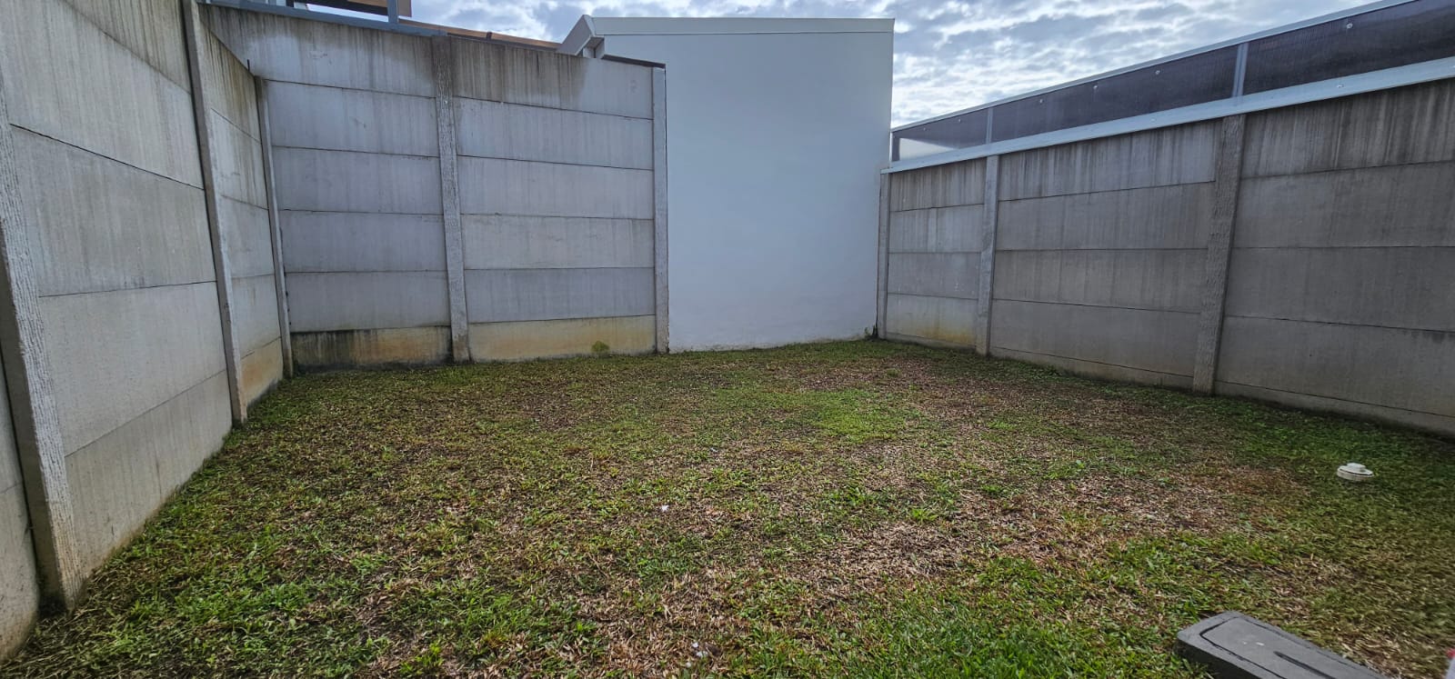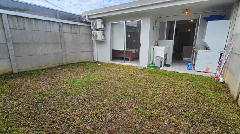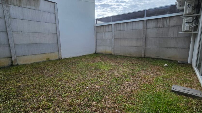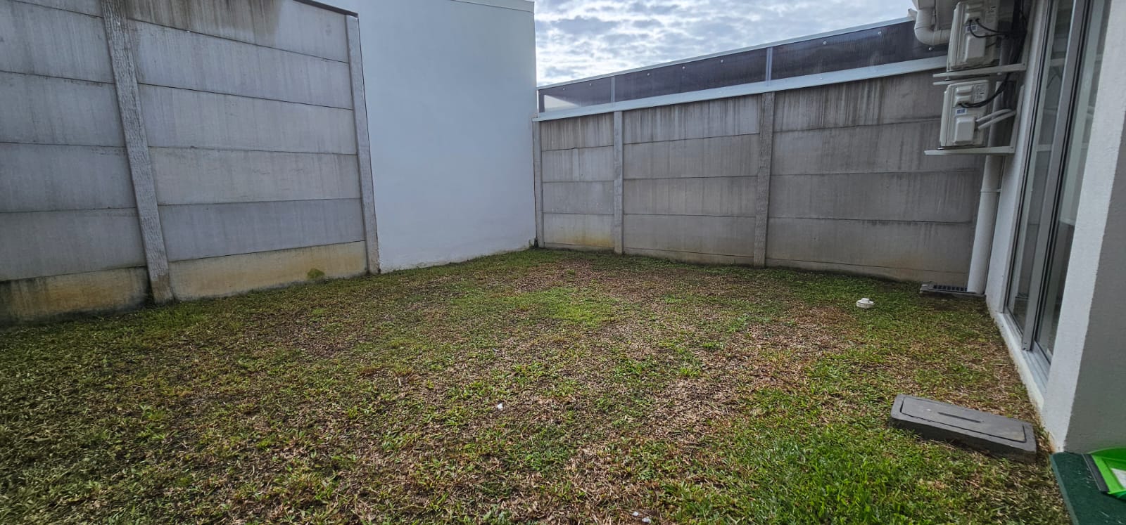 Patio trasero con zacate natural, ideal para mascotas