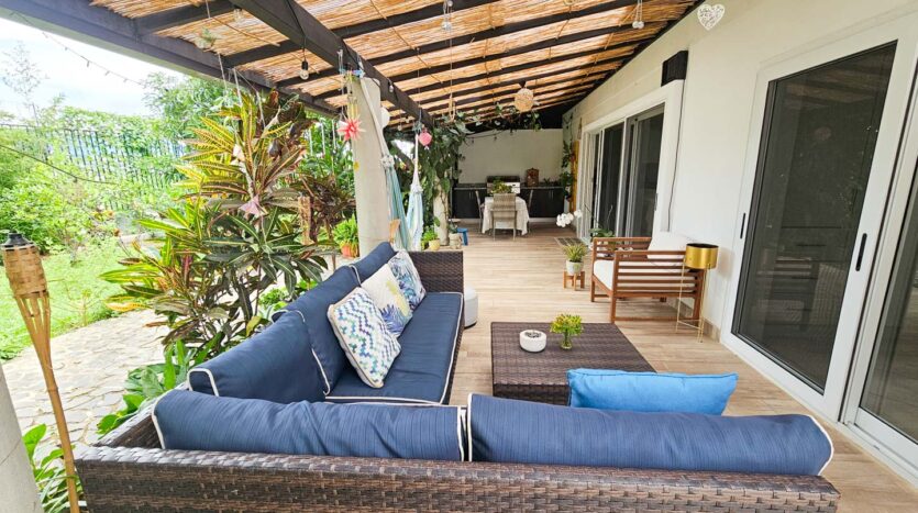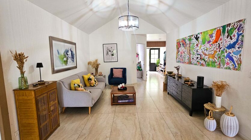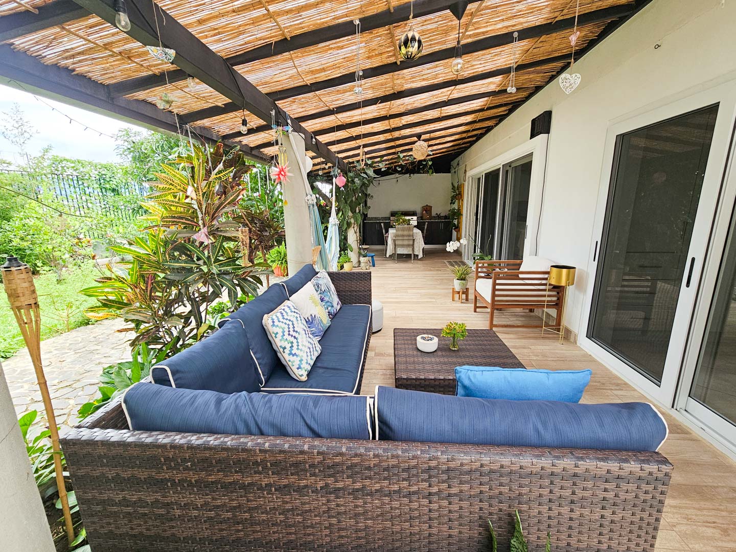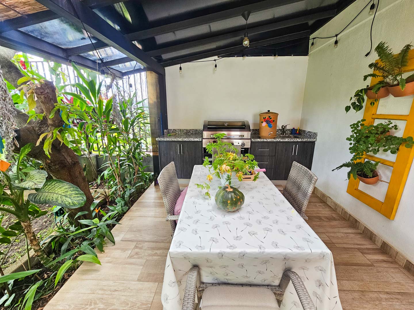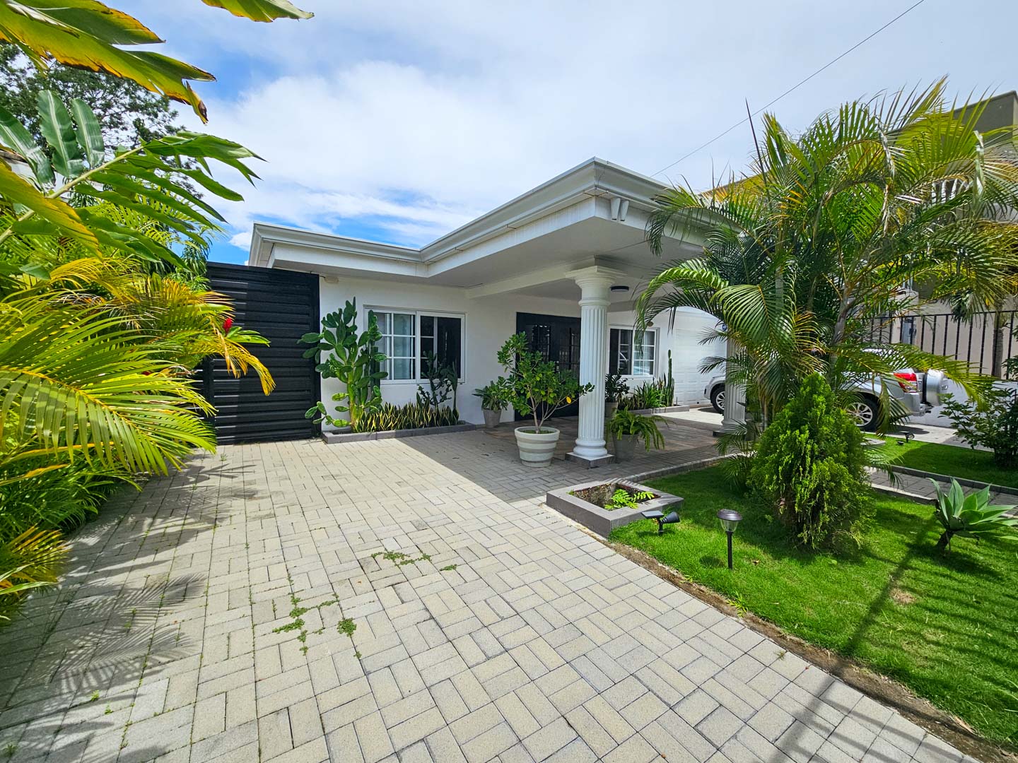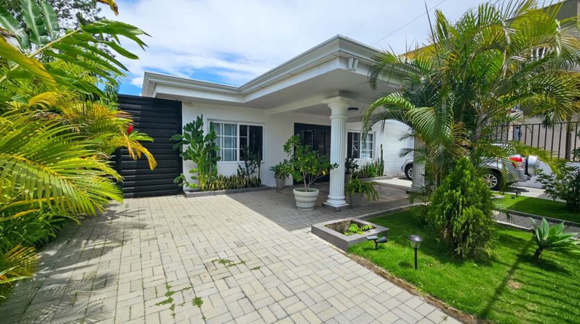 Esta casa de un solo nivel posee paqueo para 3 o 4 carros, sala comedor, cocina en un espacio compartido, 3 habitaciones con su closet, 2 baños completos, terraza trasera con área BBQ y amplio jardín trasero.