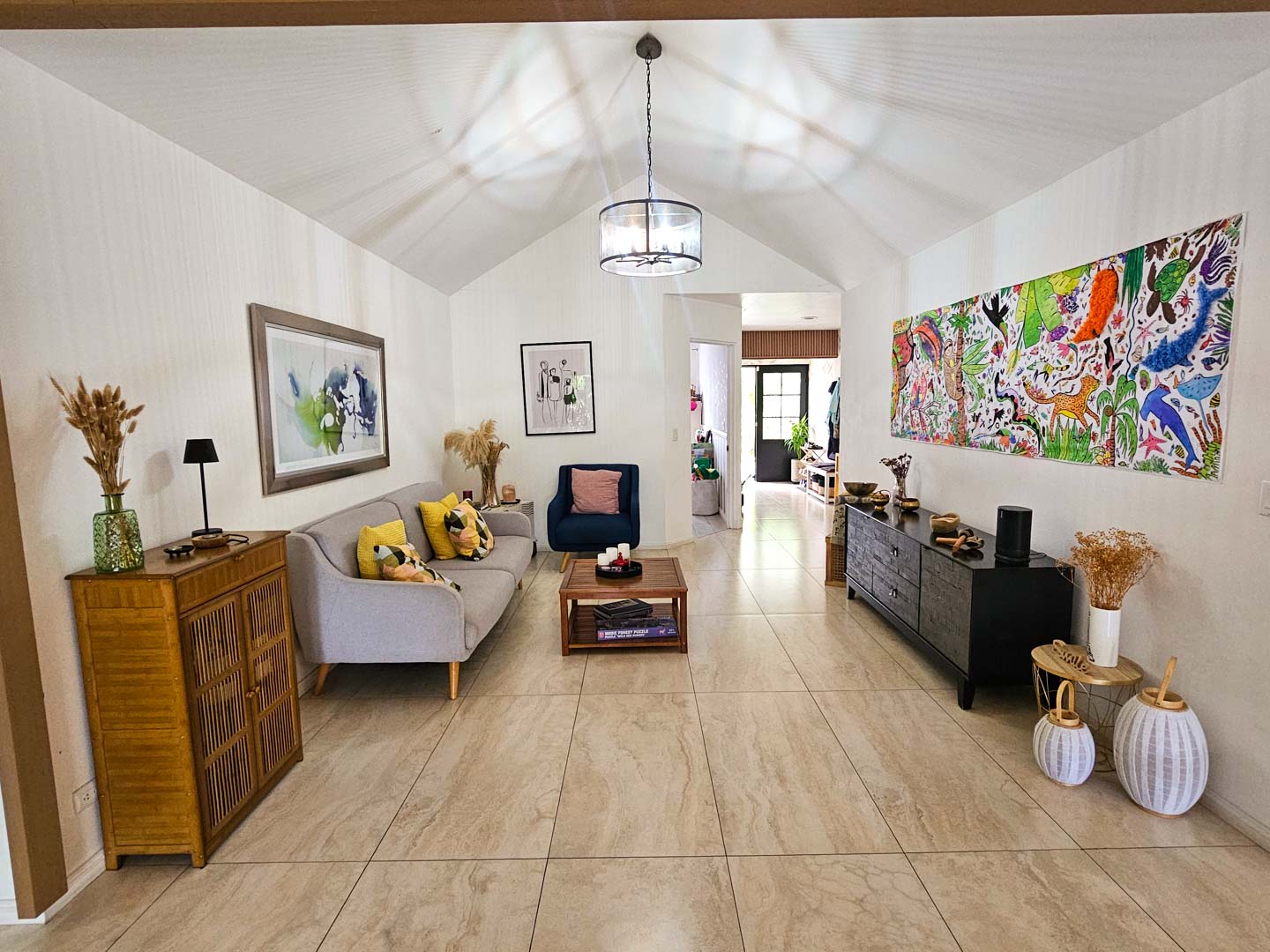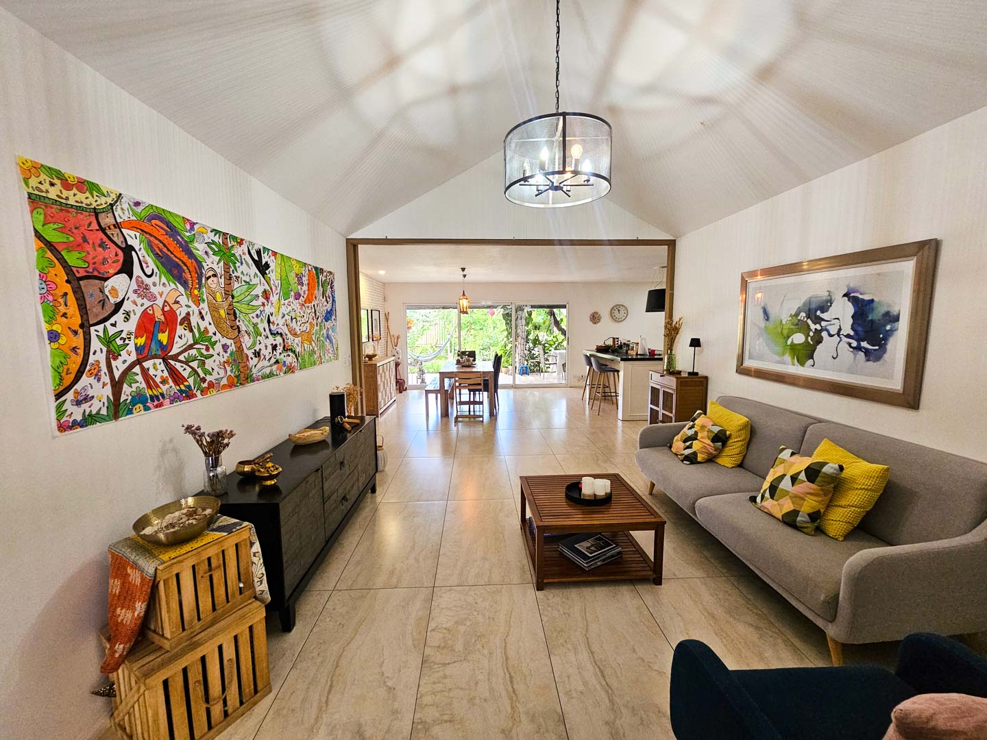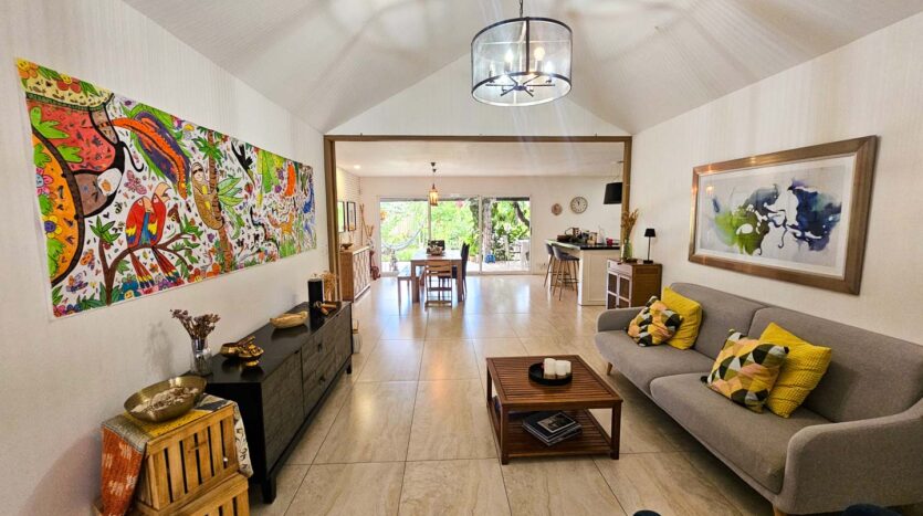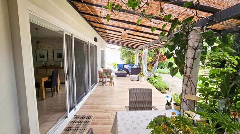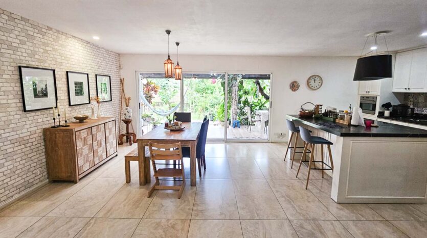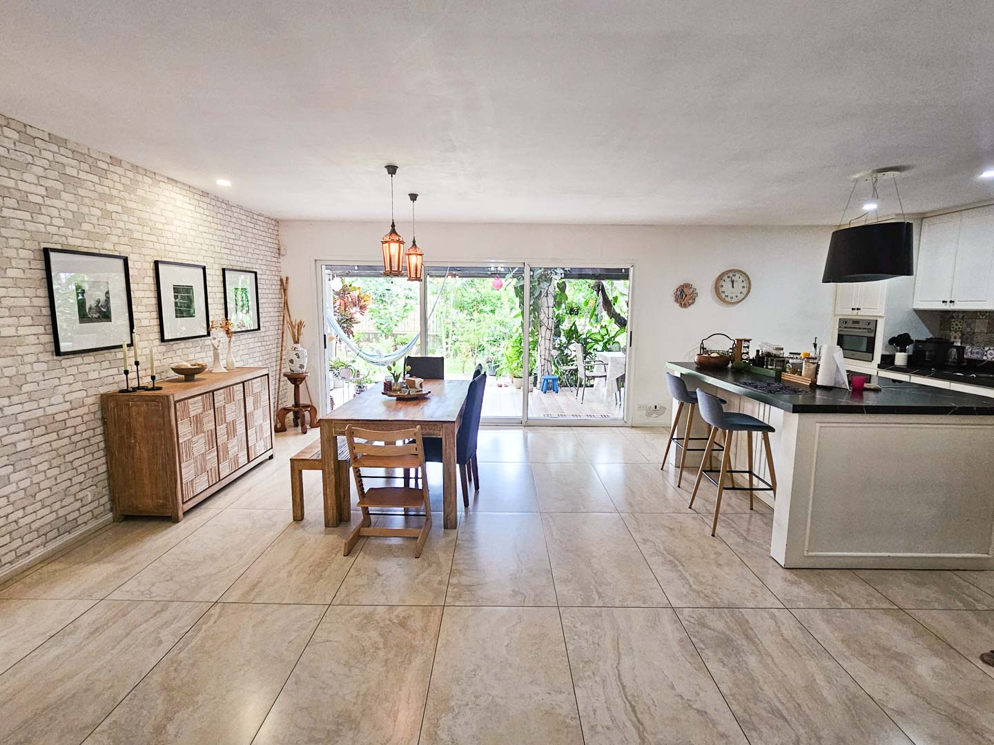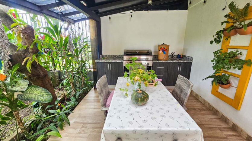Esta casa de un solo nivel posee paqueo para 3 o 4 carros, sala comedor, cocina en un espacio compartido, 3 habitaciones con su closet, 2 baños completos, terraza trasera con área BBQ y amplio jardín trasero.