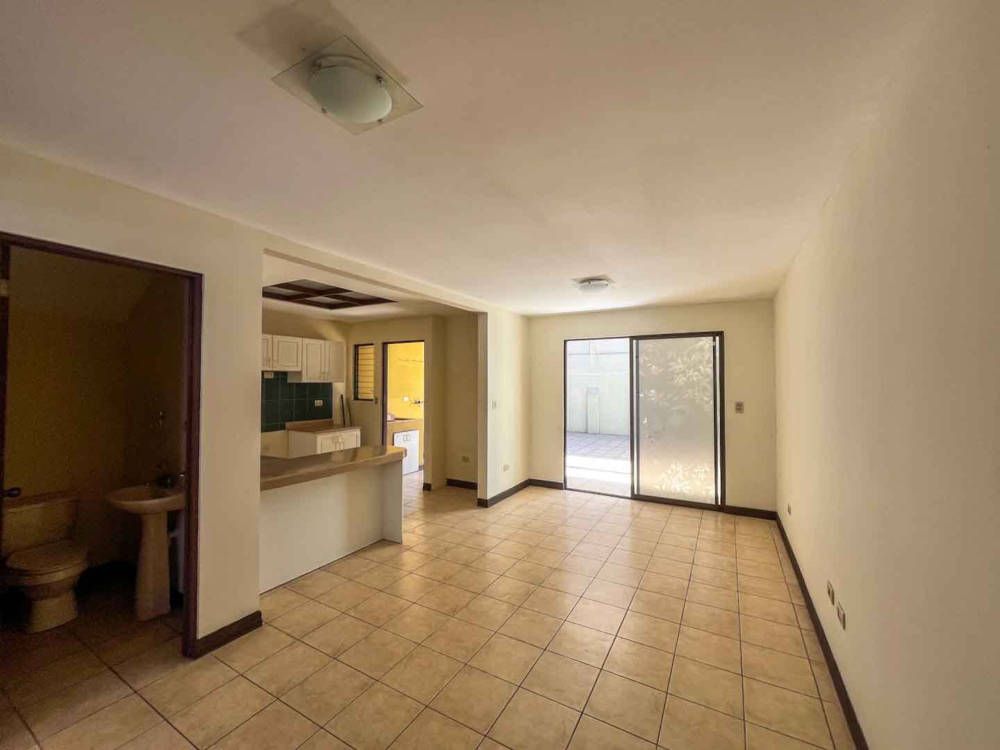 Sala y comedor con acceso a un amplio patio – terraza