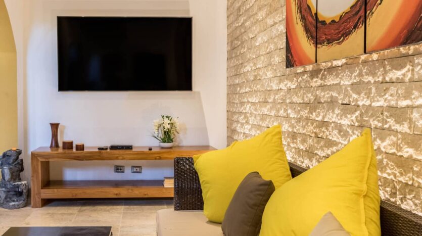 Completamente amueblada con acabados de alta gama, muchos de ellos importados de Oriente, ofrece un ambiente cálido, elegante y acogedor.