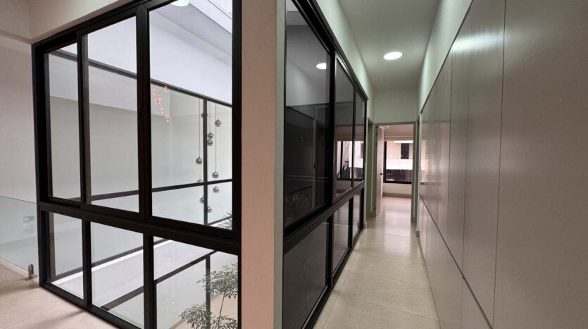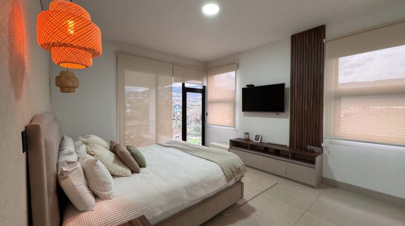 En la segunda planta, se encuentran dos dormitorios secundarios con un baño compartido, otro dormitorio con su propio baño y walk-in closet, además de un balcón privado. El dormitorio principal es un verdadero refugio, con dos walk-in closets, un baño privado y una amplia terraza con vistas excepcionales.