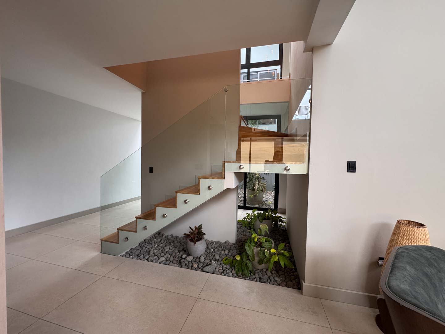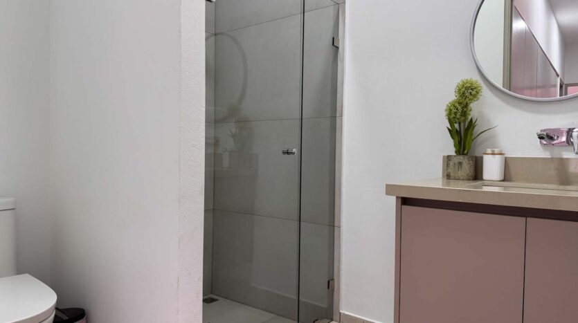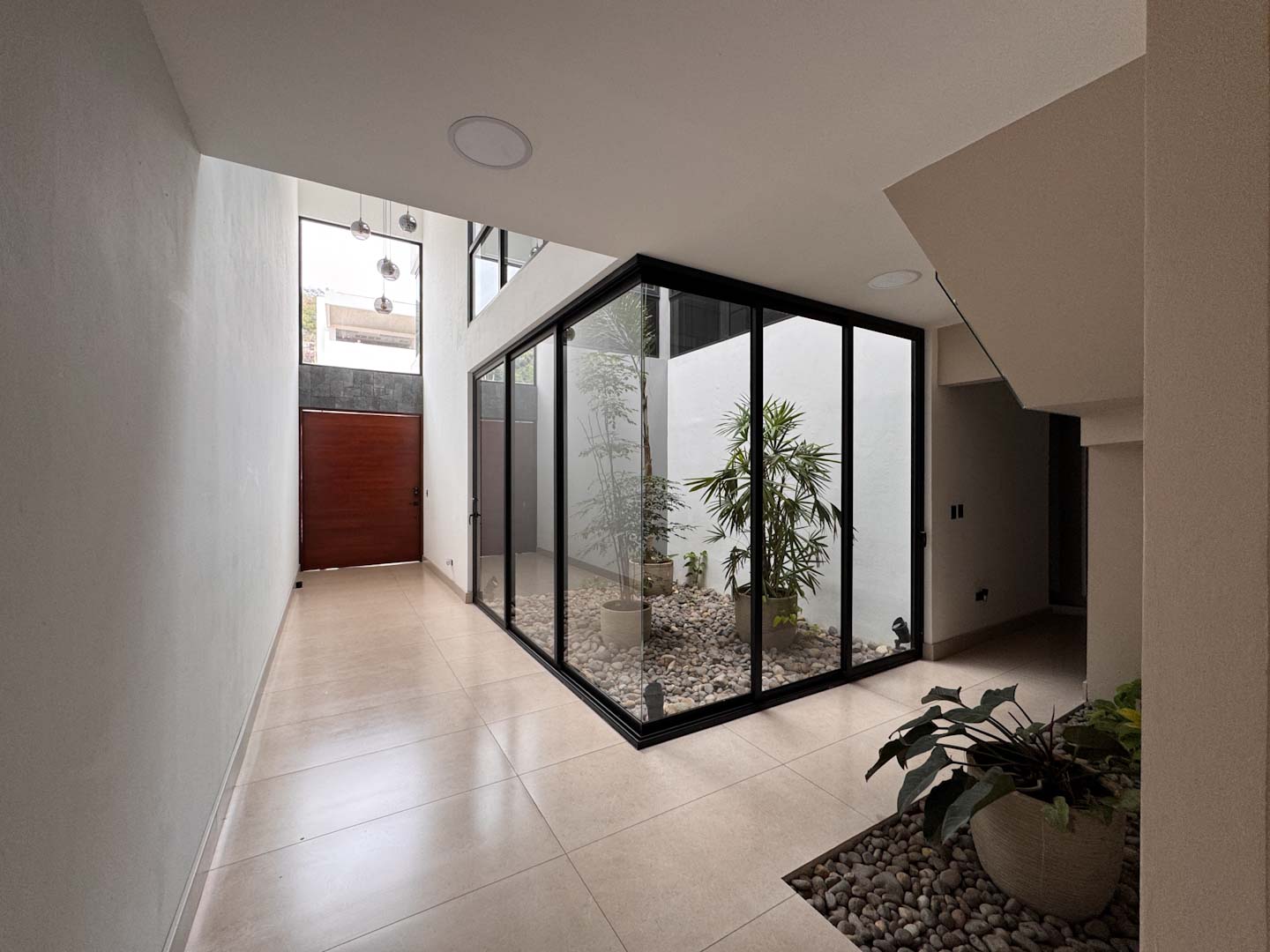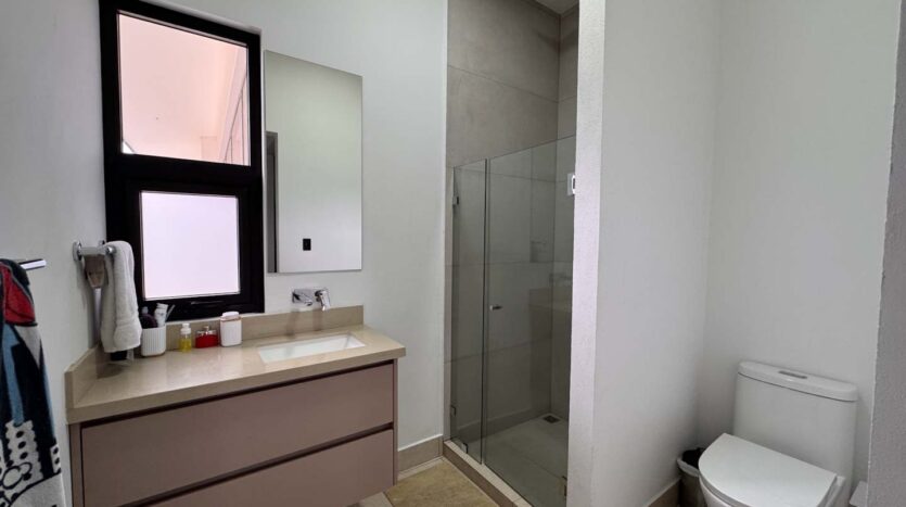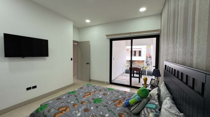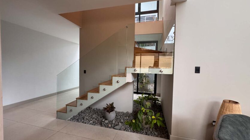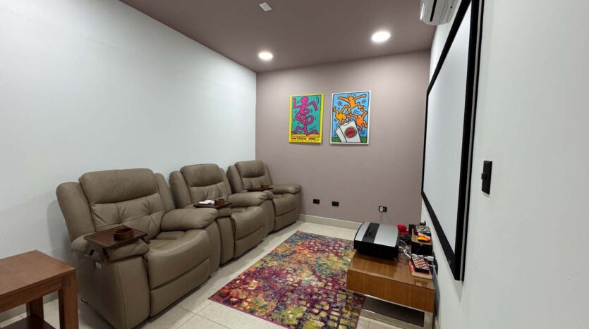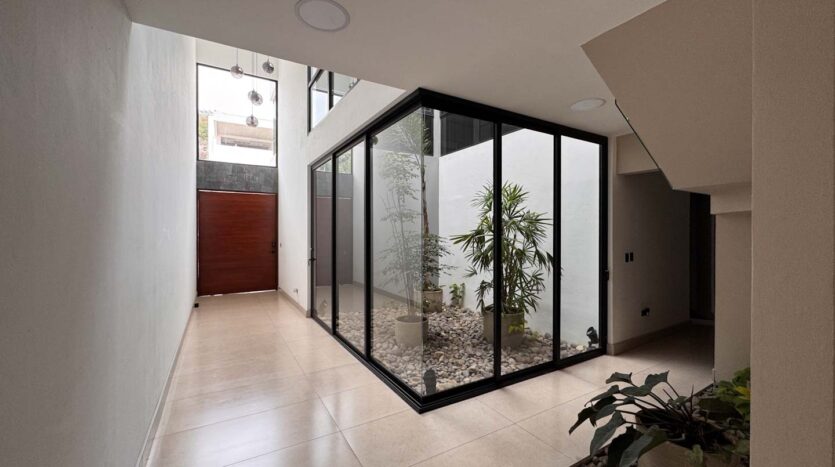 Al ingresar, un elegante recibidor y un jardín interno dan la bienvenida a un espacioso ambiente integrado de sala, comedor y cocina. La cocina cuenta con una hermosa isla central y una alacena oculta, amplia y funcional. La propiedad también ofrece una terraza equipada con BBQ, perfecta para disfrutar de reuniones sociales, y un medio baño de visitas. En esta misma planta, encontrará una sala de mini cine, un baño completo, un cuarto de servicio con su propio baño, cuarto de pilas y una bodega.