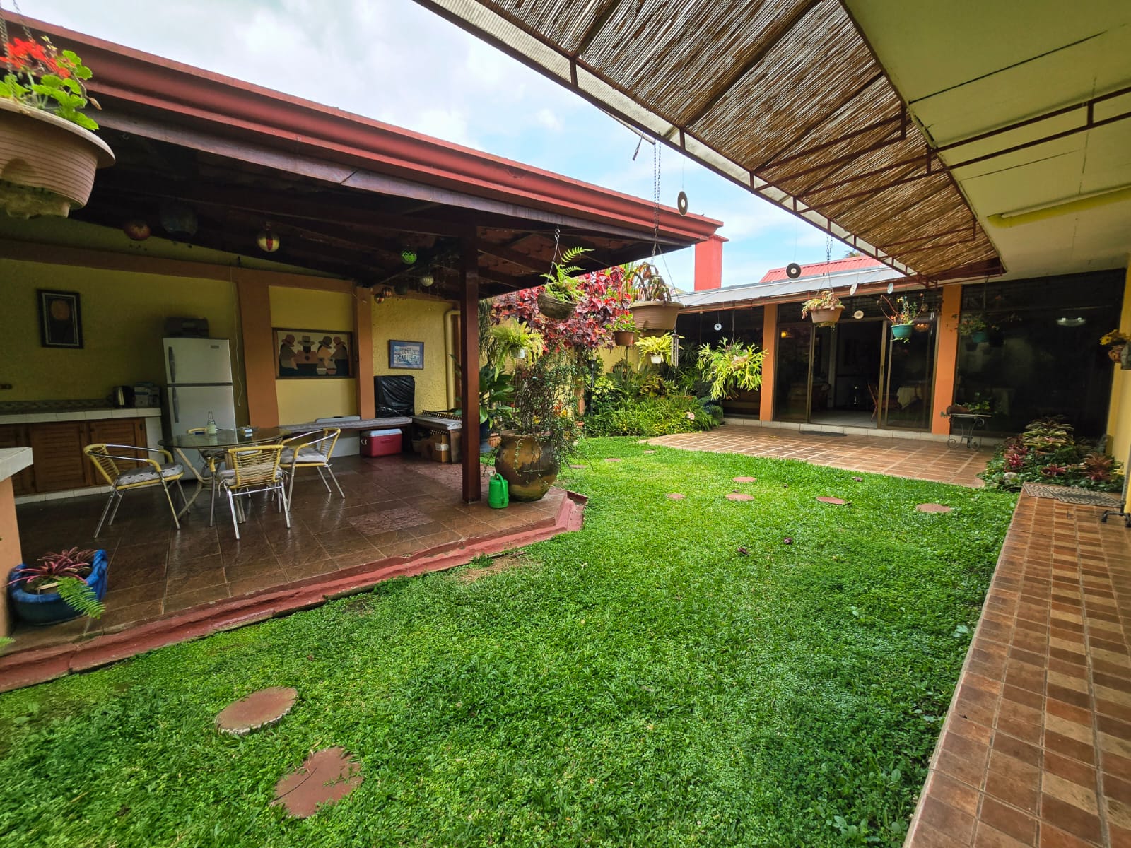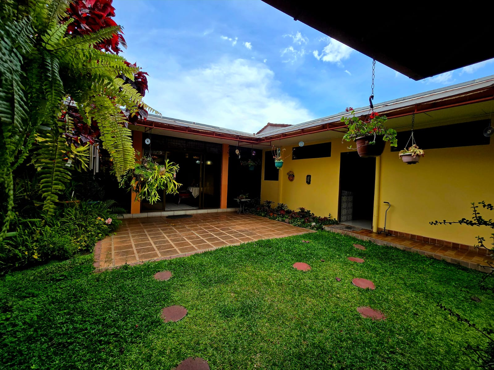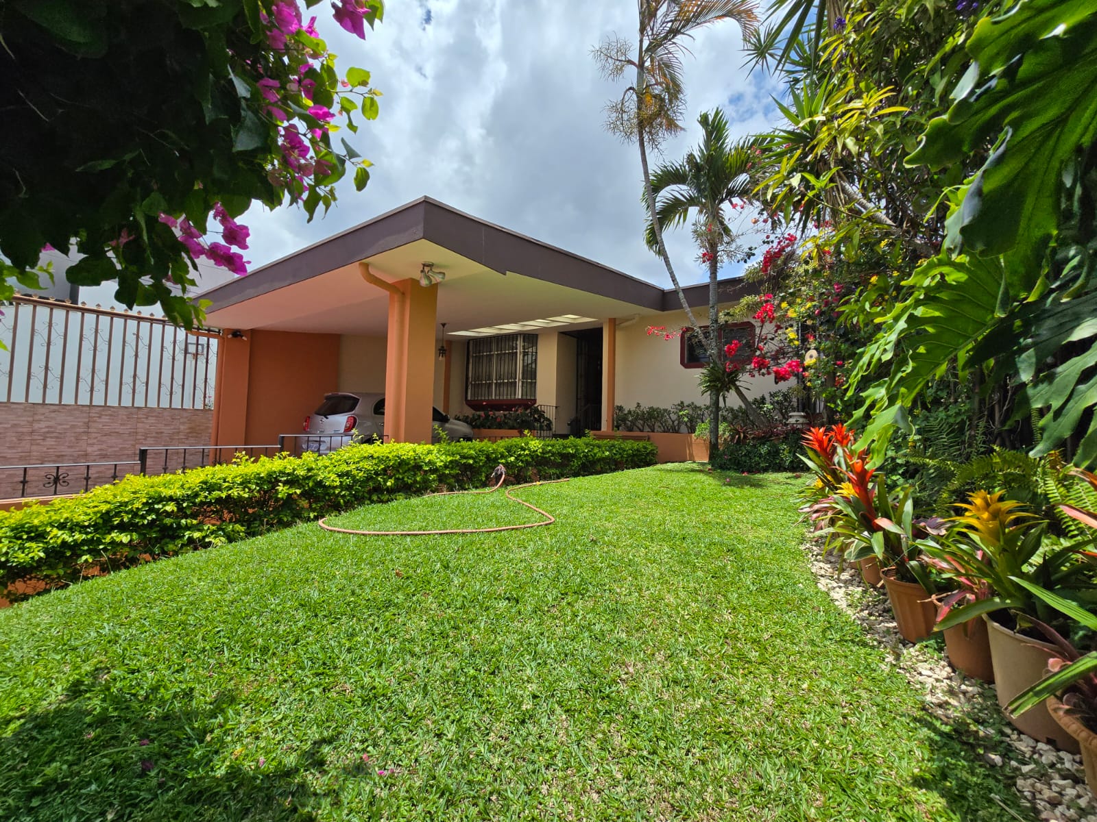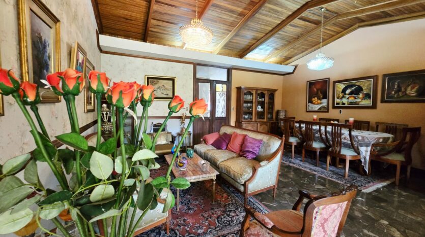 Linda y amplia casa ubicada en el Prado, totalmente independiente 3 habitaciones más servicio, dos baños completos más dos medios baños, cielos artesanados en madera, amplia cocina, ante comedor, rancho para actividades, cochera para 4 carros con portón eléctrico.