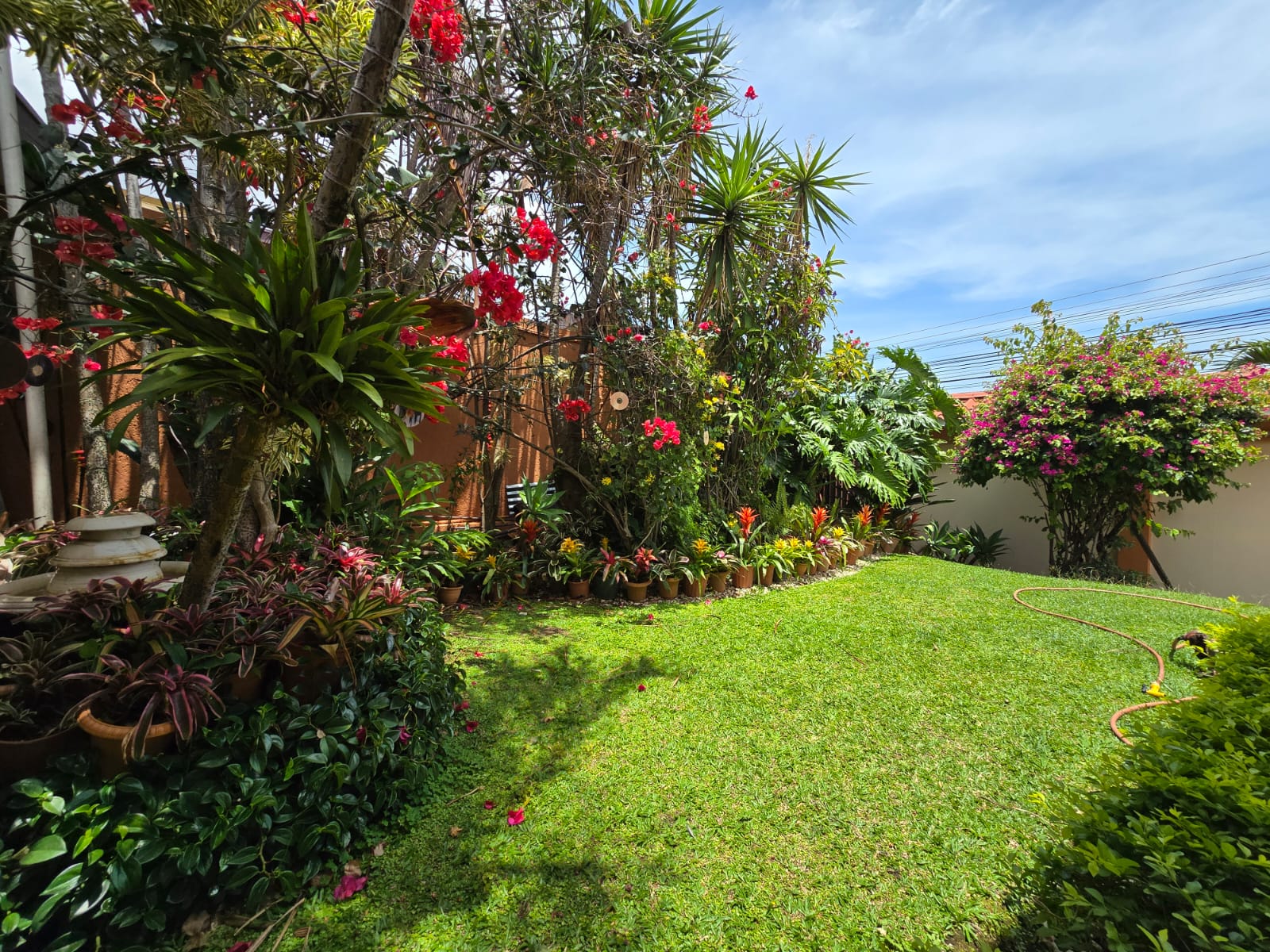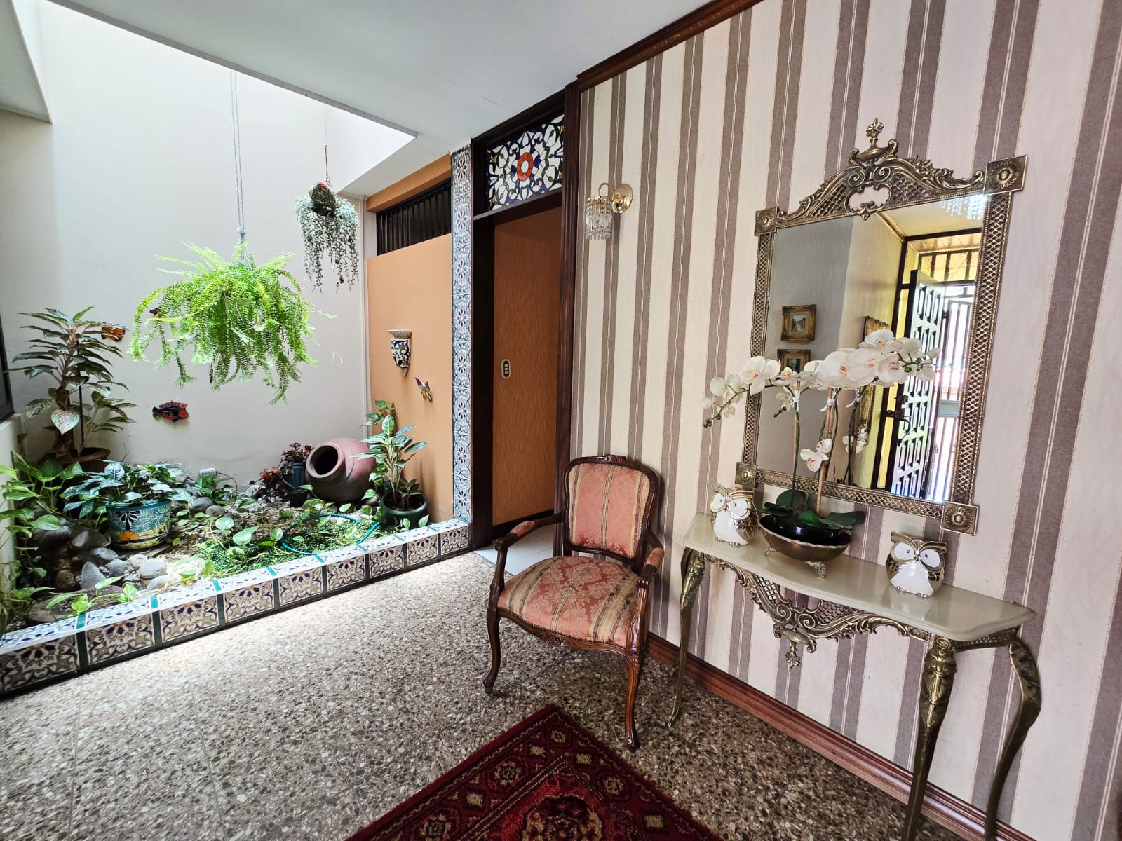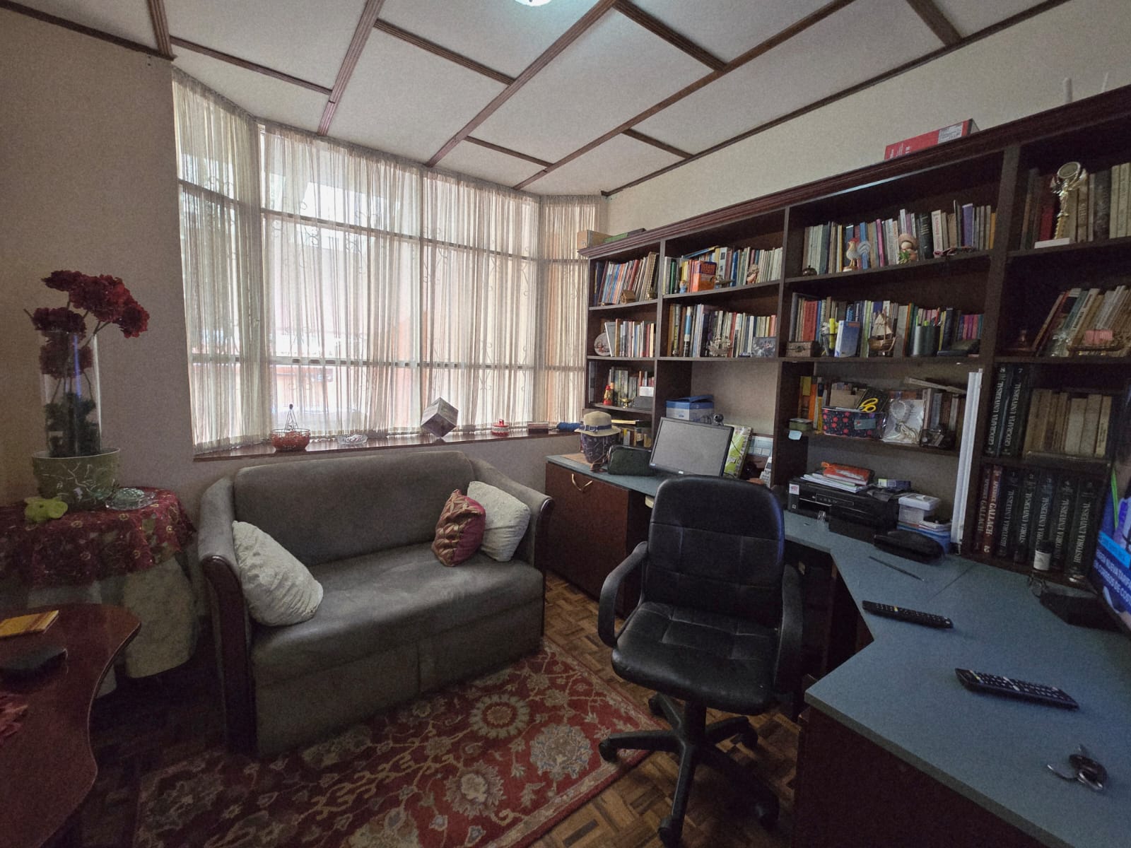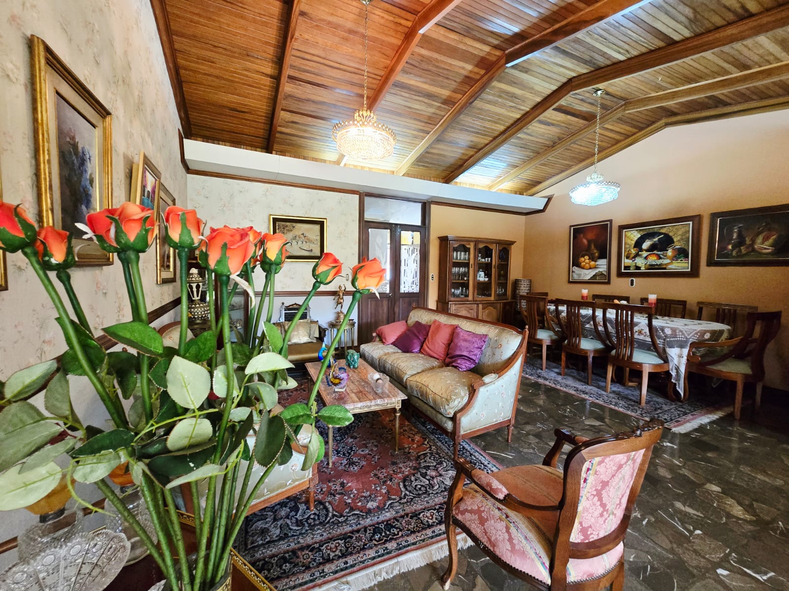 Linda y amplia casa ubicada en el Prado, totalmente independiente 3 habitaciones más servicio, dos baños completos más dos medios baños, cielos artesanados en madera, amplia cocina, ante comedor, rancho para actividades, cochera para 4 carros con portón eléctrico.