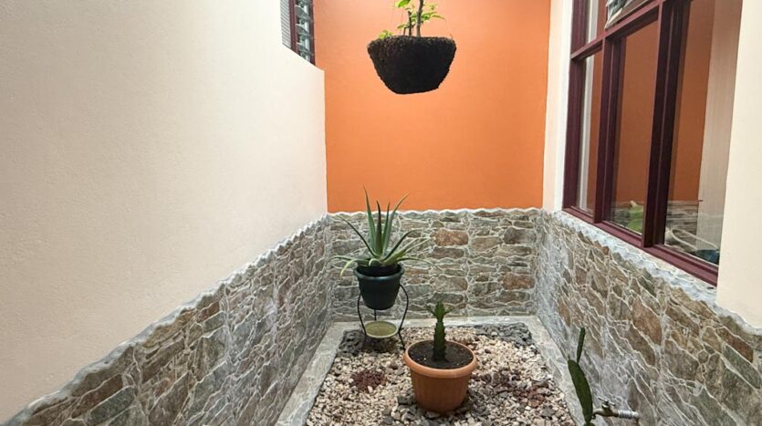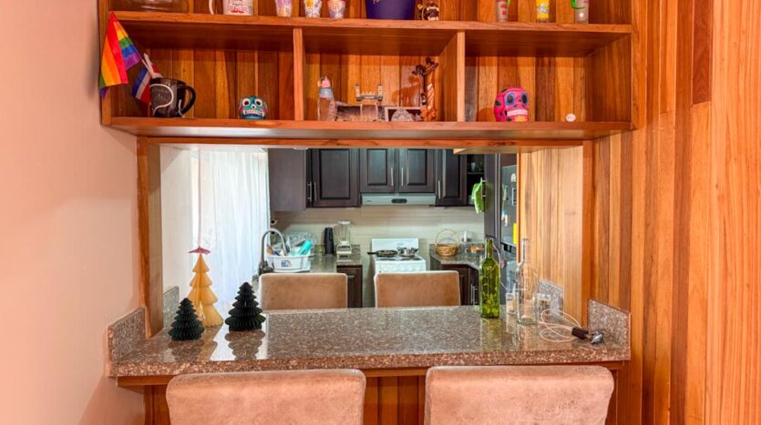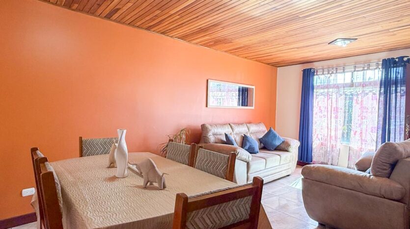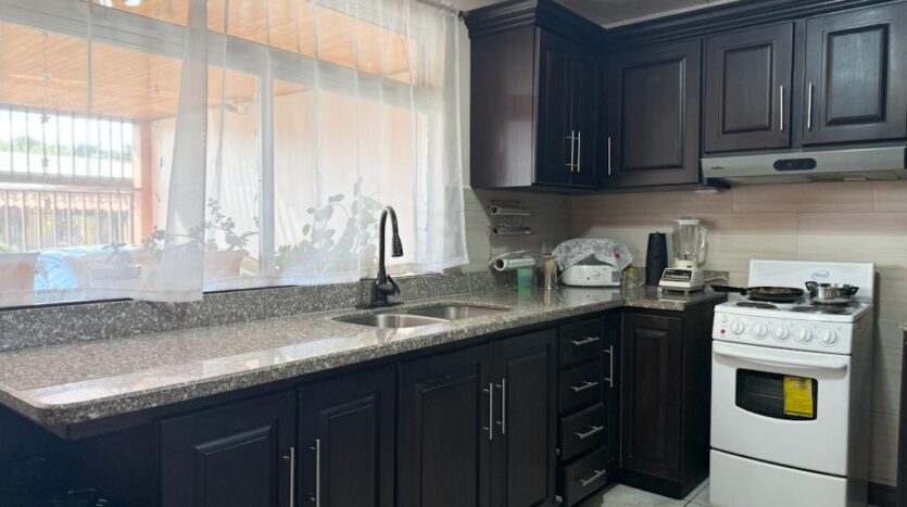 La casa es de 2 habitaciones y 2 baños con una amplia sala y comedor. Cocina amueblada con muebles en madera de Cedro y sobres en granito.