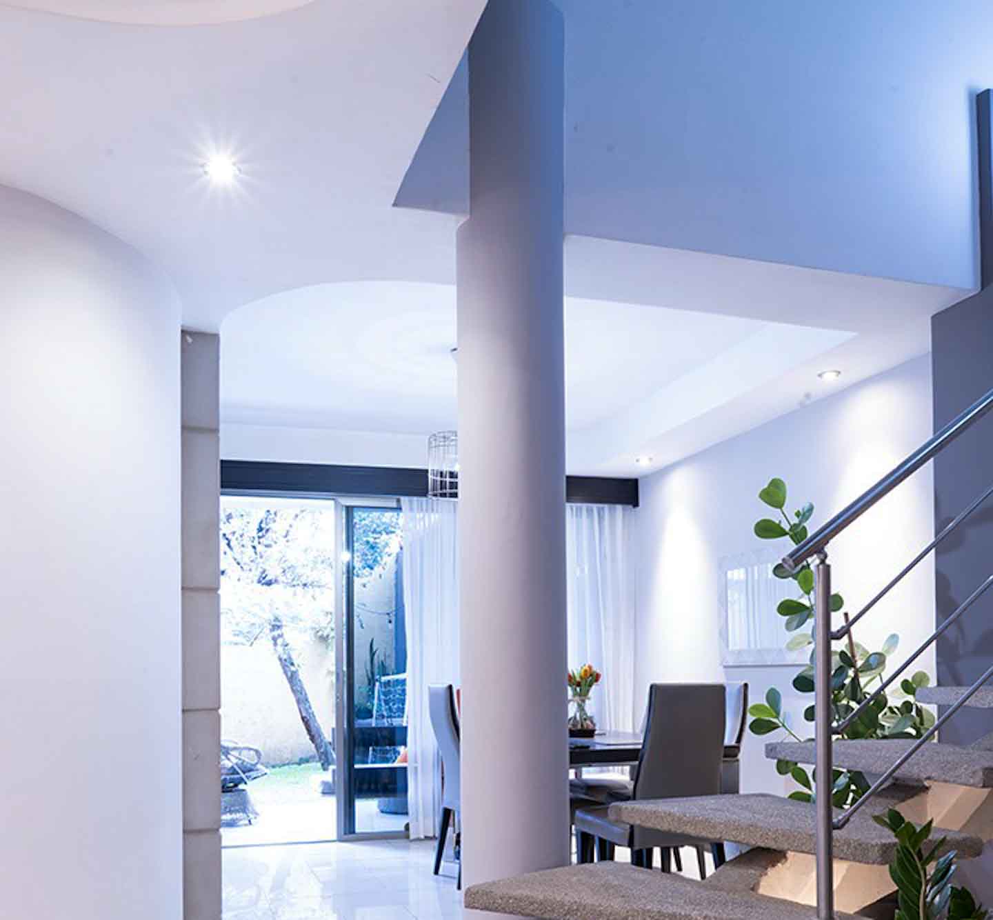 • Cielos gypsum con diseños únicos y alturas dobles en zonas clave