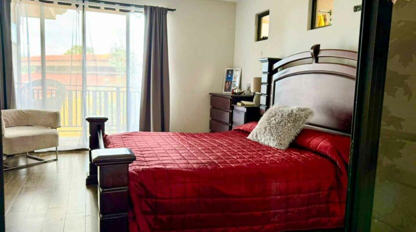 • Dormitorio principal de 4×4 m con walk-in closet, baño privado y balcón