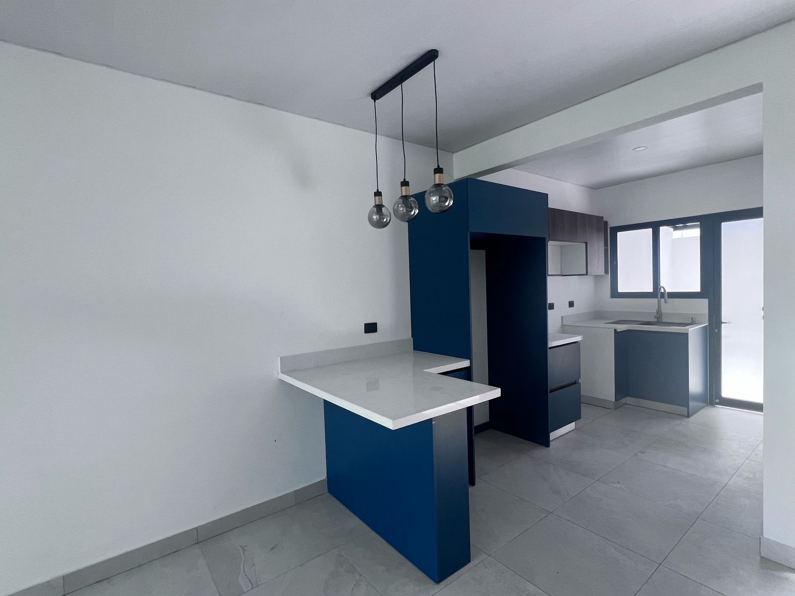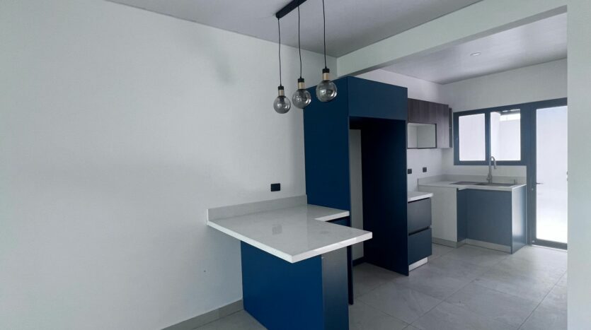 • Cocina de lujo con muebles en melamina hidrófuga y sobre de cuarzo, además de desayunador.