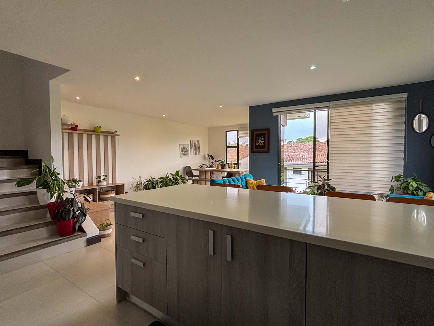 • Nivel principal: Sala, comedor y cocina integrados en un ambiente amplio y elegante.