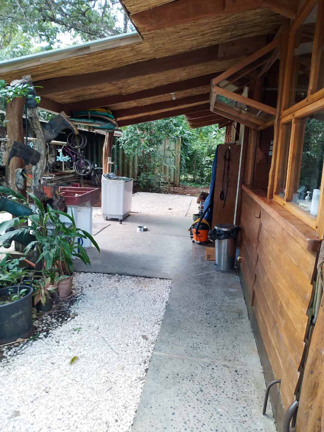 🔹 Workshop area and storage, including a 20-foot iron container and tools.