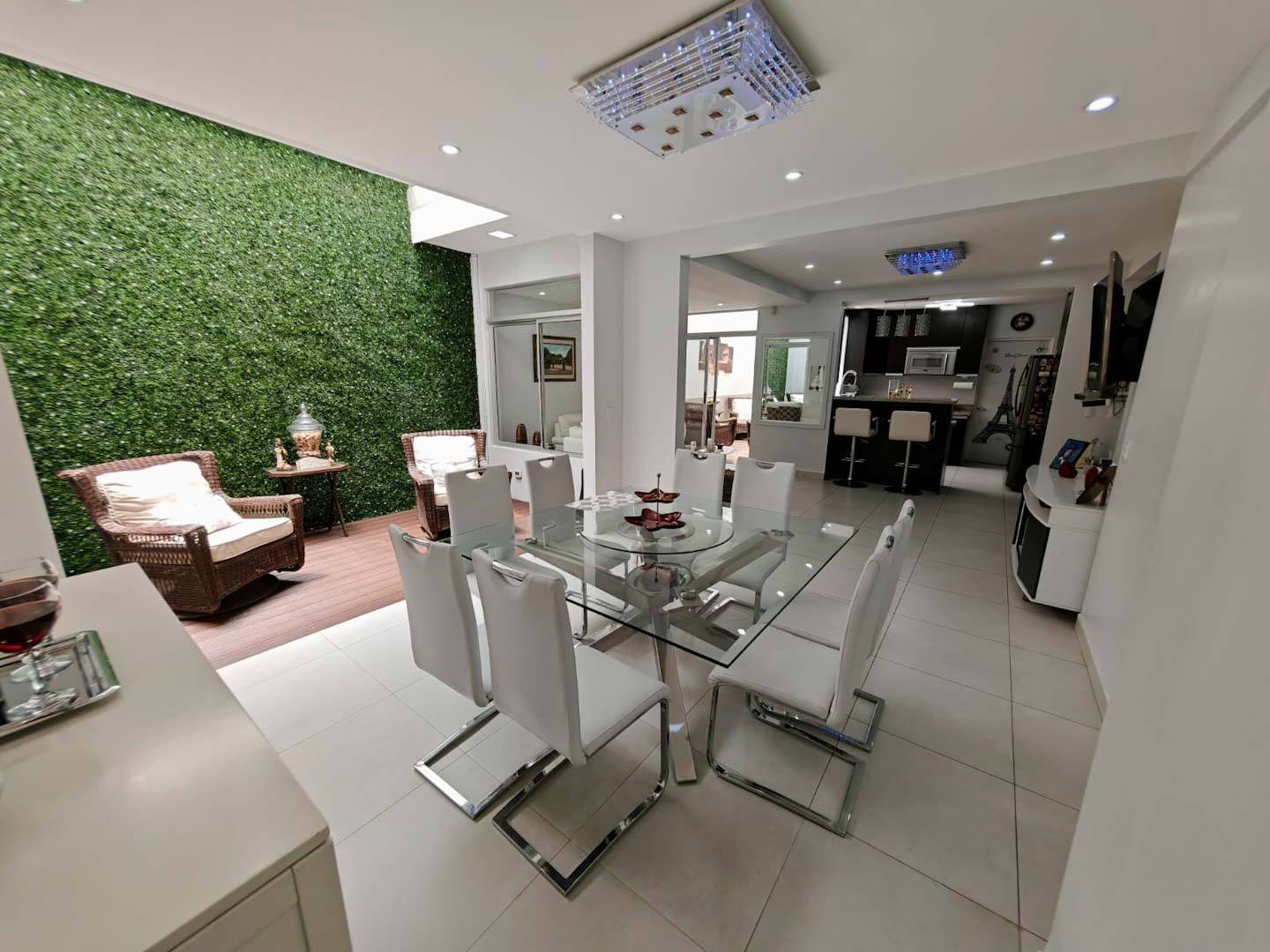 Terraza techada interna con techo movible y otra terraza abierta con acceso al jardín