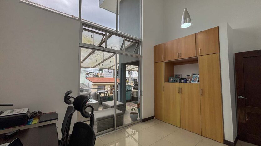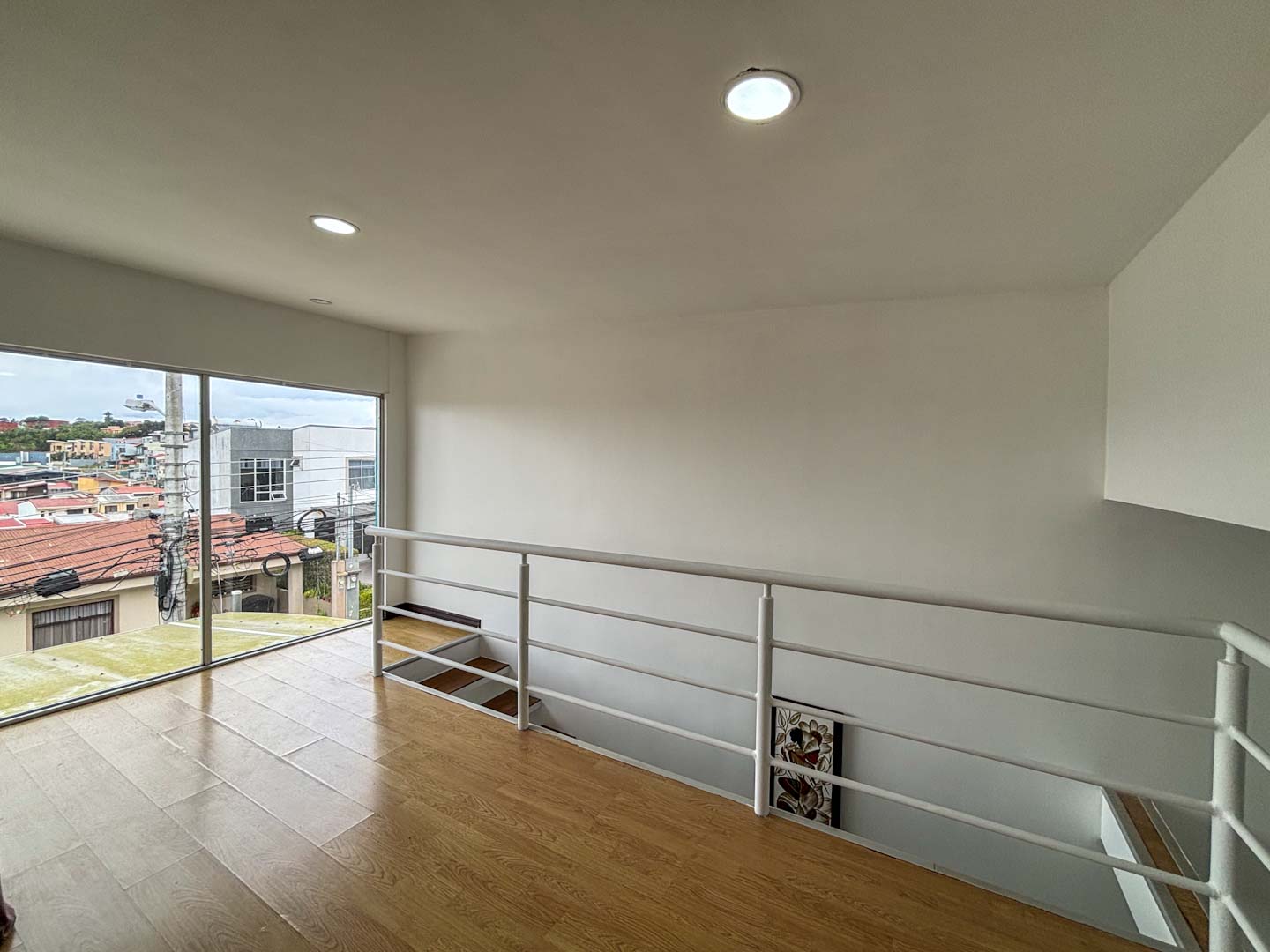 El mezanine ofrece una vista espectacular 🌅, ideal para crear una oficina en casa 🖥️ o una sala de TV 🎬.