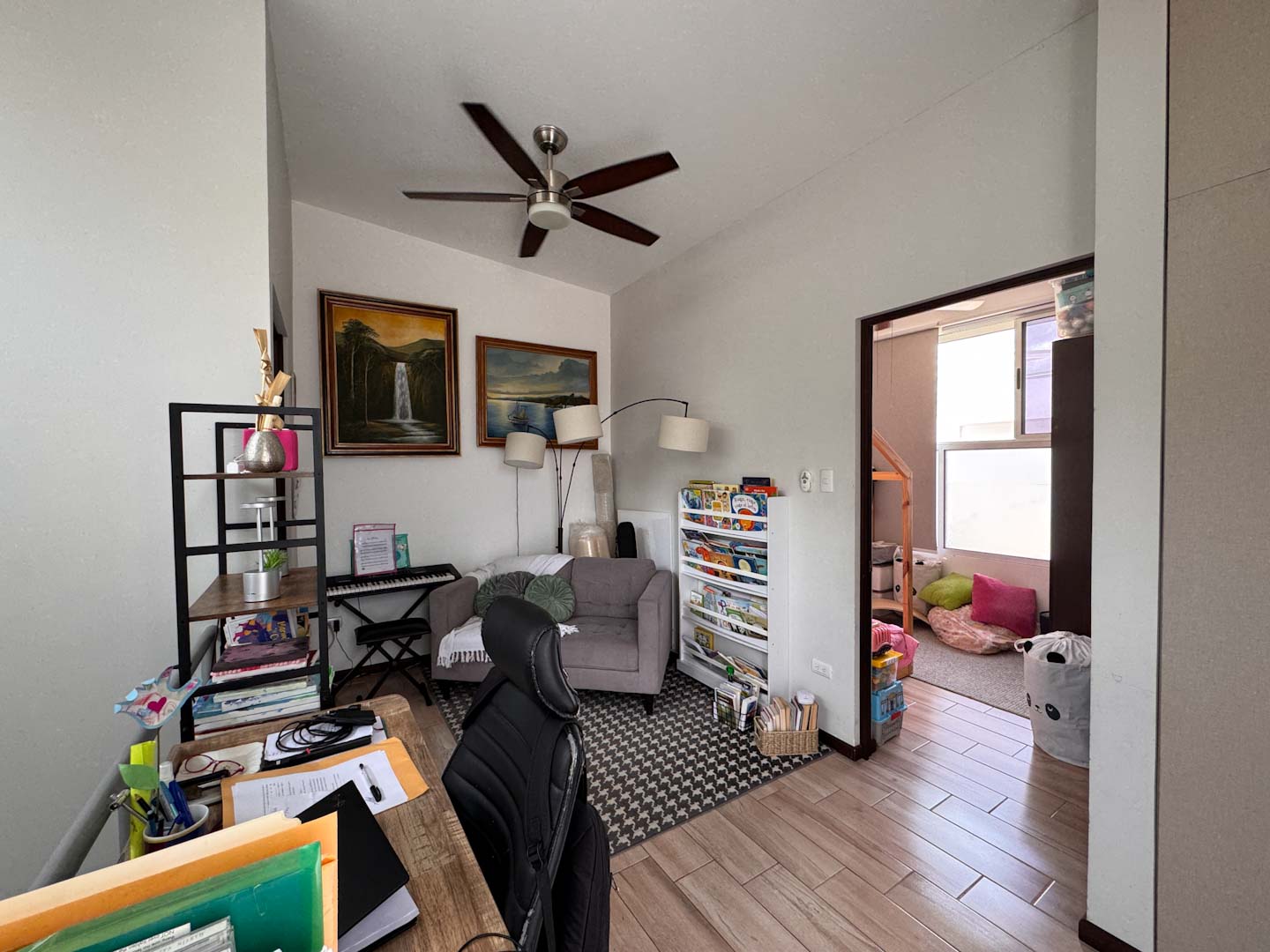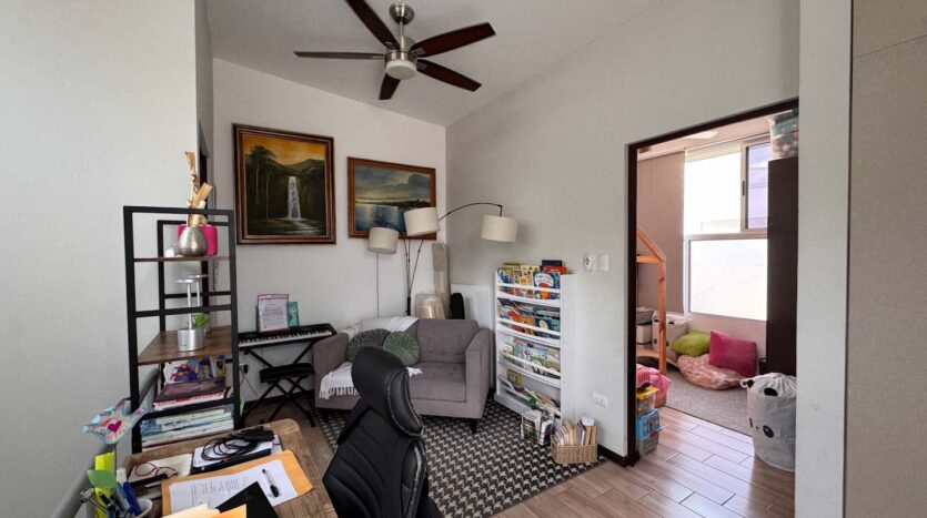 Cielo raso alto, gran iluminación natural, ventilación cruzada y abanicos de techo en todos los espacios