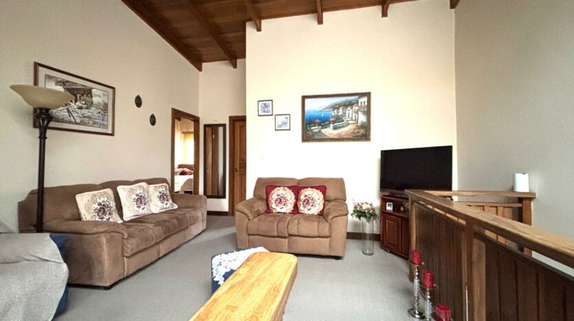 En la planta alta encontrará 4 habitaciones, 2 baños completos y una sala de TV para compartir en familia.