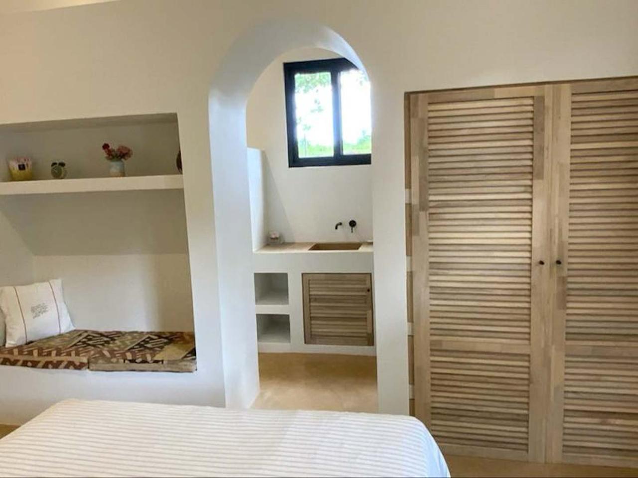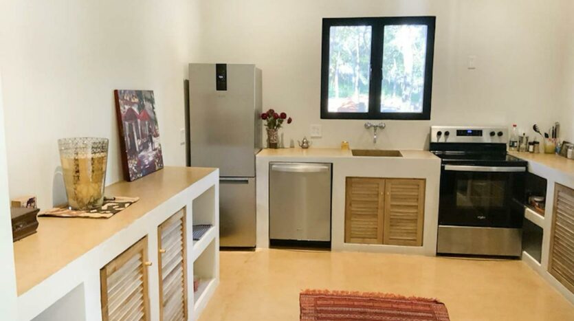 Step inside and be enchanted by the Ibiza-inspired design, where an airy open floor plan welcomes you with high ceilings, elegant European windows, and swift fiber optic internet connectivity, seamlessly blending modern indulgence with the tranquil ambiance of nature. Smooth concrete walls and floors radiate a calming atmosphere, while the kitchen gleams with stainless steel appliances, offering both flair and utility. Air conditioning units throughout the home ensure comfort amidst the tropical climate.