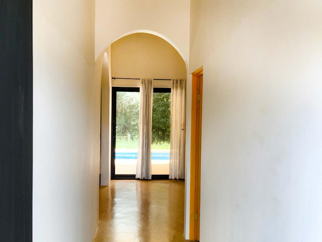 En el exterior, el patio cubierto te invita a la piscina acogedora, rodeada por la serena belleza del paisaje. Además, la propiedad cuenta con un solarium arriba, preparado para un potencial segundo piso.