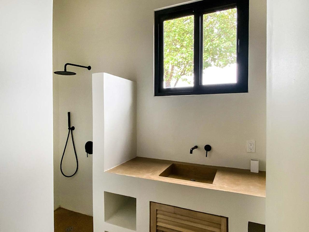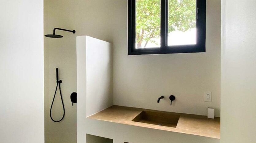 Adéntrate y déjate encantar por el diseño inspirado en Ibiza, donde un espacioso plano abierto te da la bienvenida con techos altos, elegantes ventanas europeas y una rápida conectividad a internet de fibra óptica, fusionando sin esfuerzo el lujo moderno con la serena atmósfera de la naturaleza. Las paredes y pisos de concreto liso irradian una atmósfera tranquilizadora, mientras que la cocina reluce con electrodomésticos de acero inoxidable, ofreciendo tanto estilo como utilidad. Unidades de aire acondicionado en toda la casa garantizan el confort en medio del clima tropical.