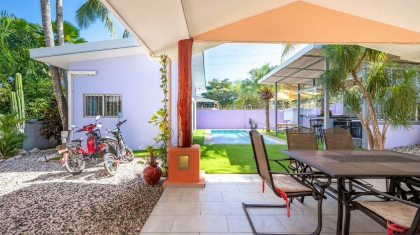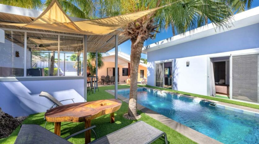 La segunda casa, un encantador bungalow que abarca 45 m2, cuenta con 2 dormitorios y 1 baño. Estratégicamente posicionada frente a la atractiva piscina de 21 m2, con un rancho adyacente de 12 m2 y una compacta cocina al aire libre, sirve como una lucrativa oportunidad de inversión, actualmente utilizada para alquileres de Airbnb. Ambas residencias están completamente amuebladas y equipadas con aire acondicionado, cajas de seguridad y mini refrigeradores, garantizando que los huéspedes disfruten de una estancia cómoda y memorable.