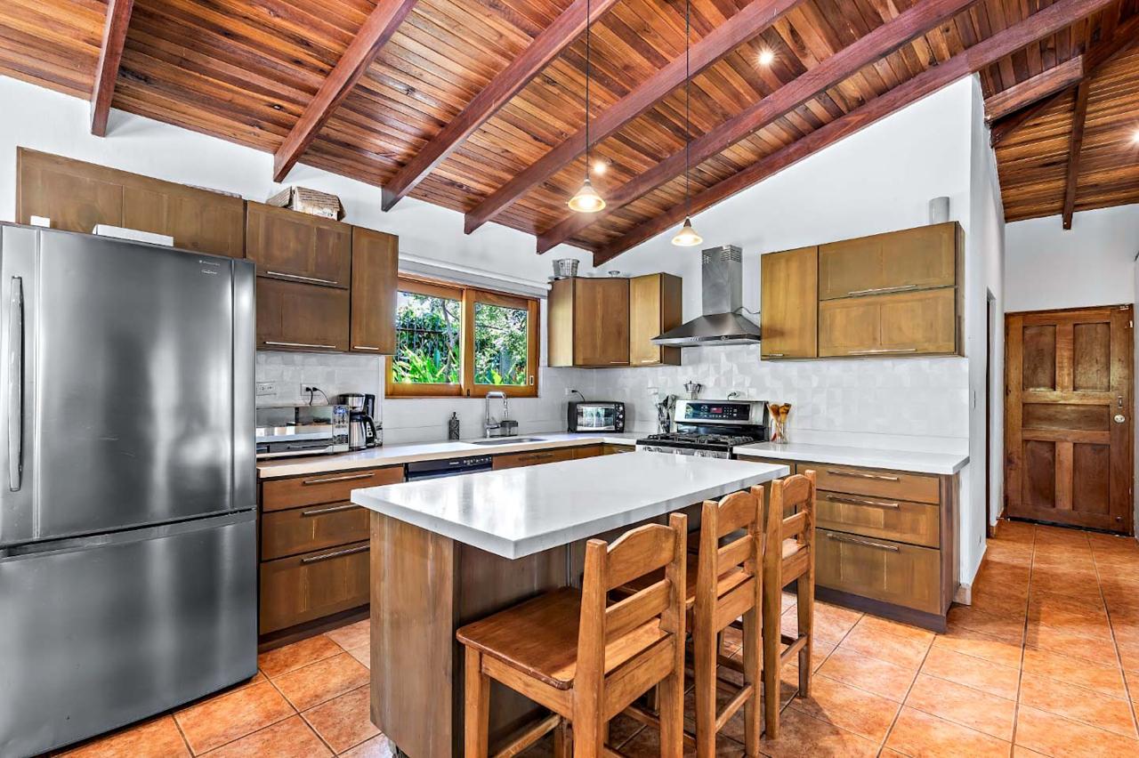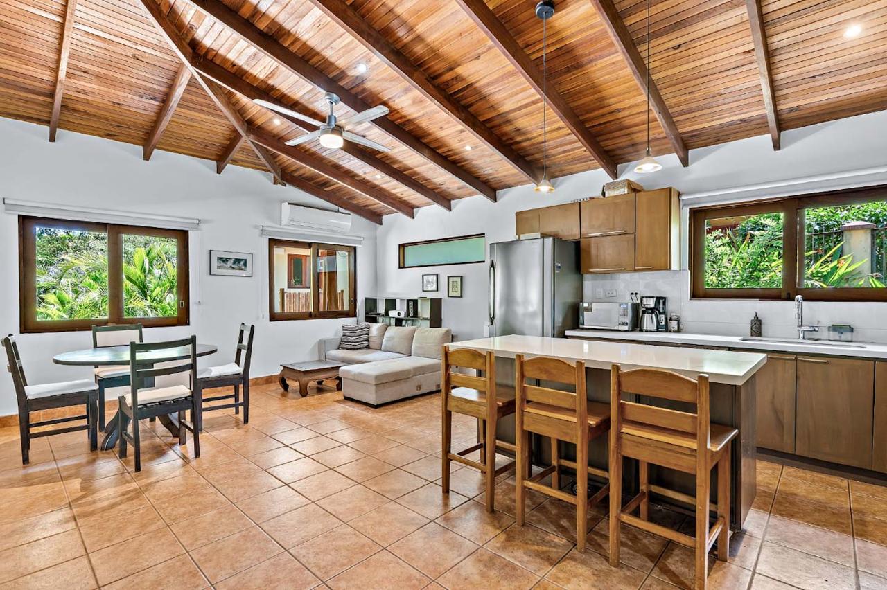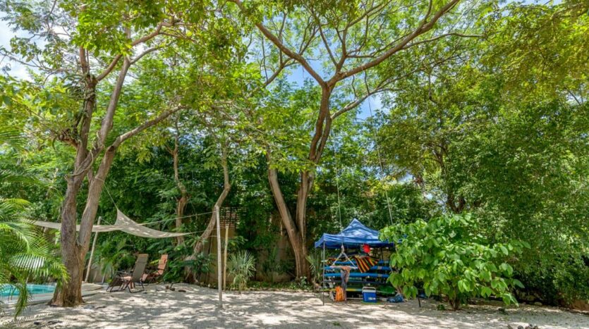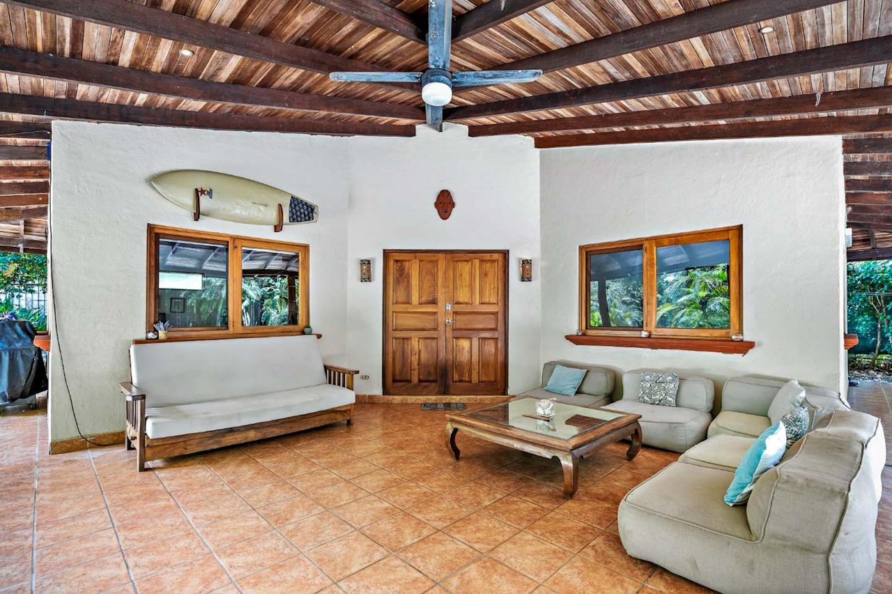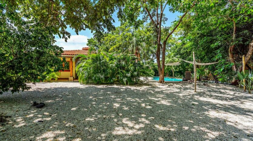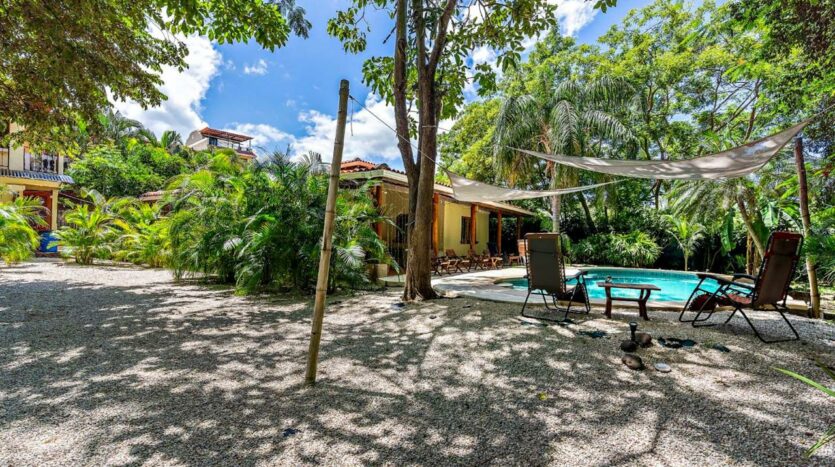 Los jardines, cuidadosamente mantenidos, están adornados con exuberante vegetación tropical, creando un entorno tranquilo que complementa la serenidad de la zona. La amplia piscina es perfecta para relajarse bajo el sol mientras se disfruta de la suave brisa marina. Además, la zonificación comercial del terreno añade flexibilidad, permitiendo explorar diferentes emprendimientos. No es raro avistar monos aulladores en los árboles y enormes iguanas que llaman hogar a este lugar.