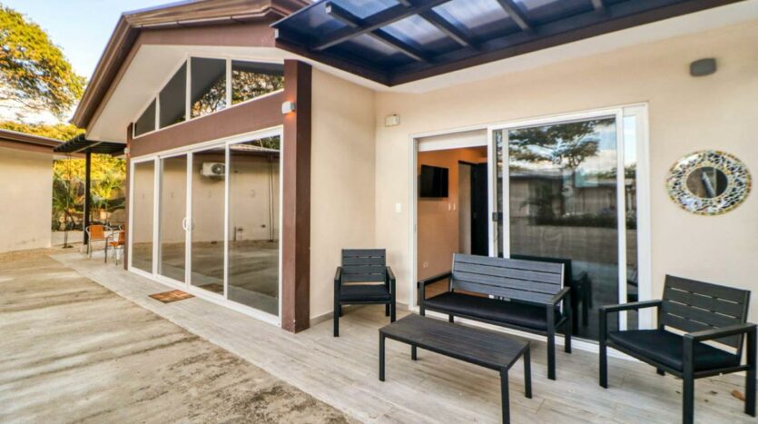Disfruta de una escapada contemporánea y apta para mascotas en esta impresionante villa ubicada en el pintoresco pueblo costero de Playa Avellanas, Costa Rica. Escondida dentro de una lujosa comunidad cerrada, esta casa cuidadosamente diseñada está rodeada de exuberante vegetación y hermosos paisajes, ofreciendo una armoniosa mezcla de belleza natural y vida moderna.