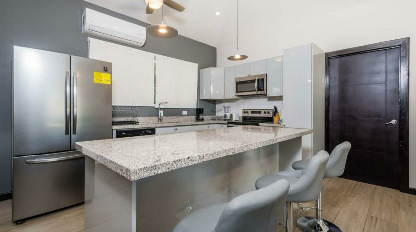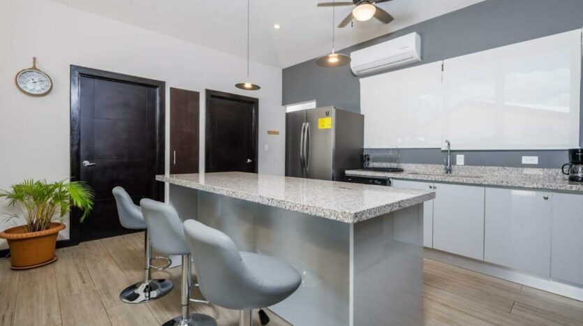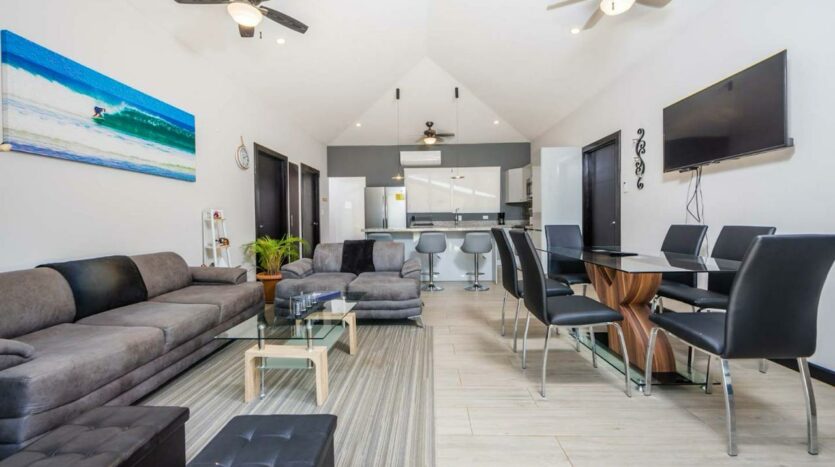 Indulge in a contemporary, pet-friendly escape at this stunning villa situated in the picturesque coastal town of Playa Avellanas, Costa Rica. Tucked away within a luxurious gated community, this thoughtfully appointed home is surrounded by lush greenery and beautiful landscaping, offering a harmonious blend of natural beauty and modern living.