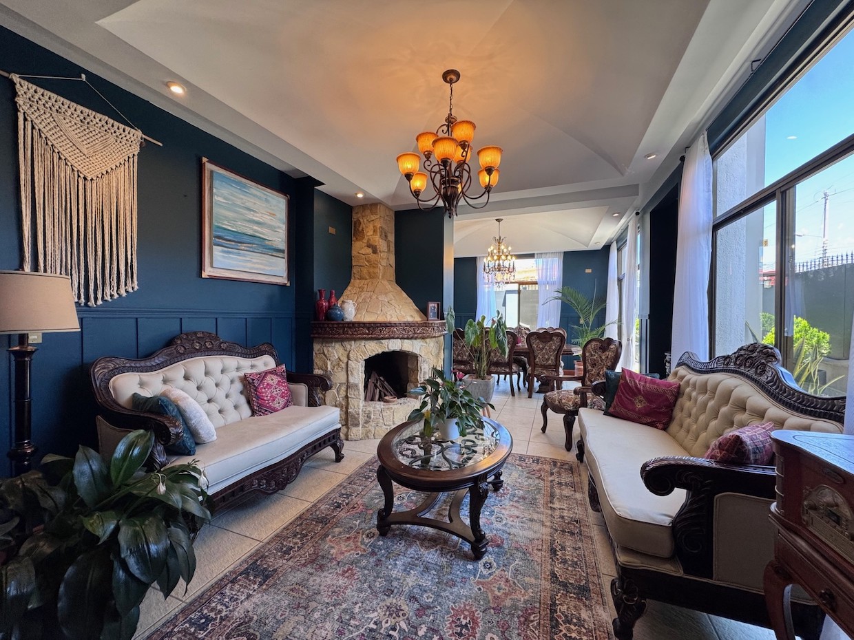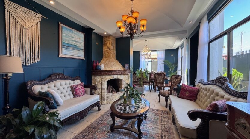La casa cuenta con un estilo único, con muchos detalles de madera de alta calidad, marmol en baños, porcelanato español y detalles en cielo con cúpula.