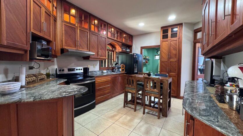 - Amplia cocina con mueble en laurel y múltiples espacios de almacenamiento.
