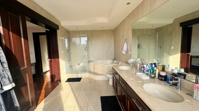 Las habitaciones 2 secundarias son amplias, closet, comparten un baño completo, mientras la habitación principal es bastante grande y cómoda, con jacuzzi, baño separado, walk-in-closet y preciosas vistas al oeste.