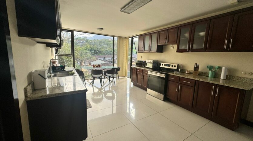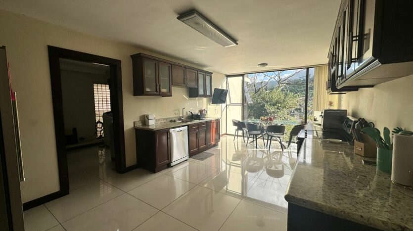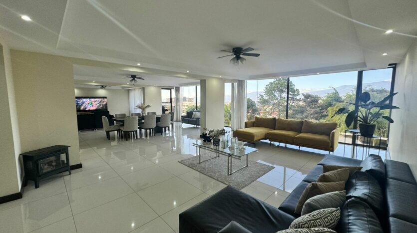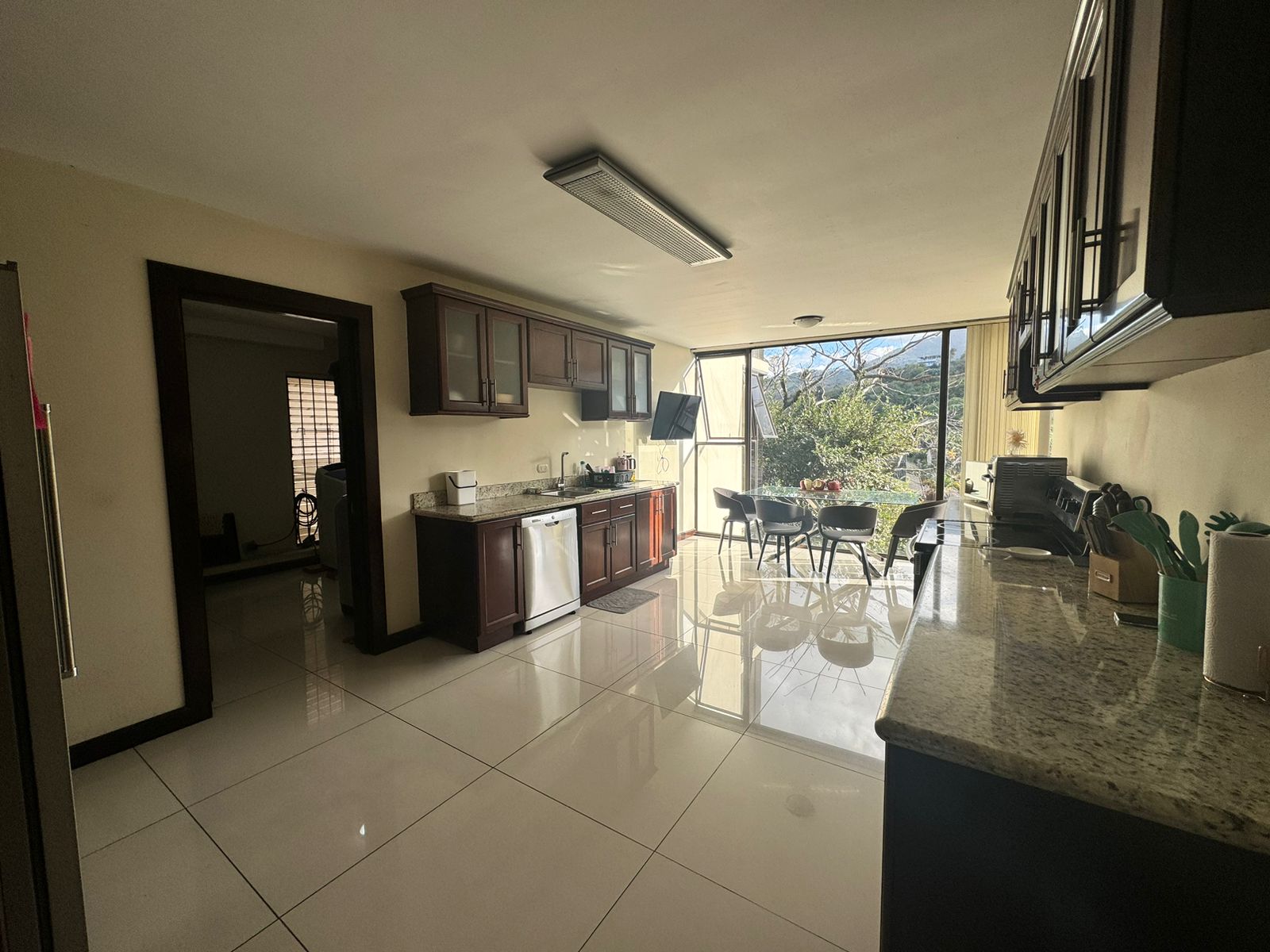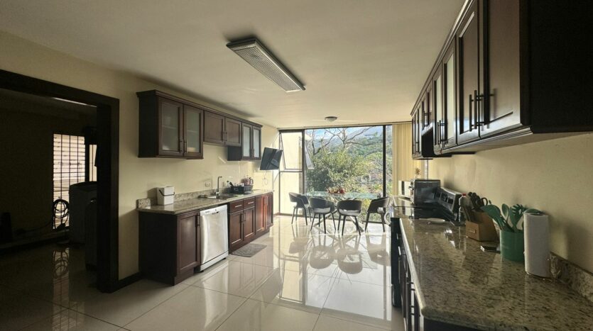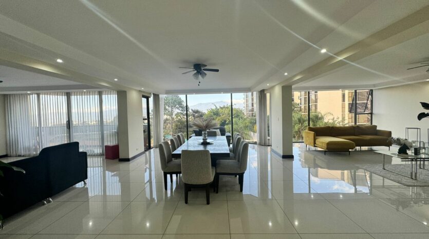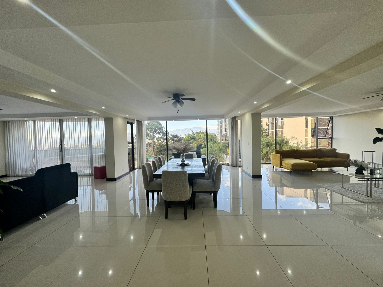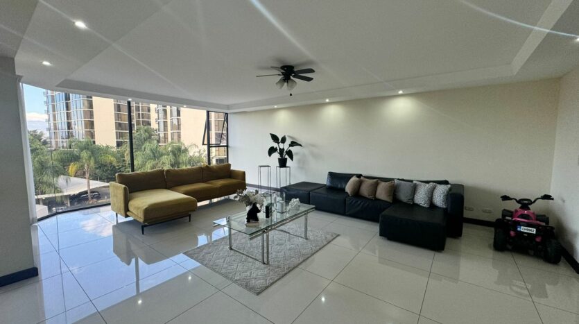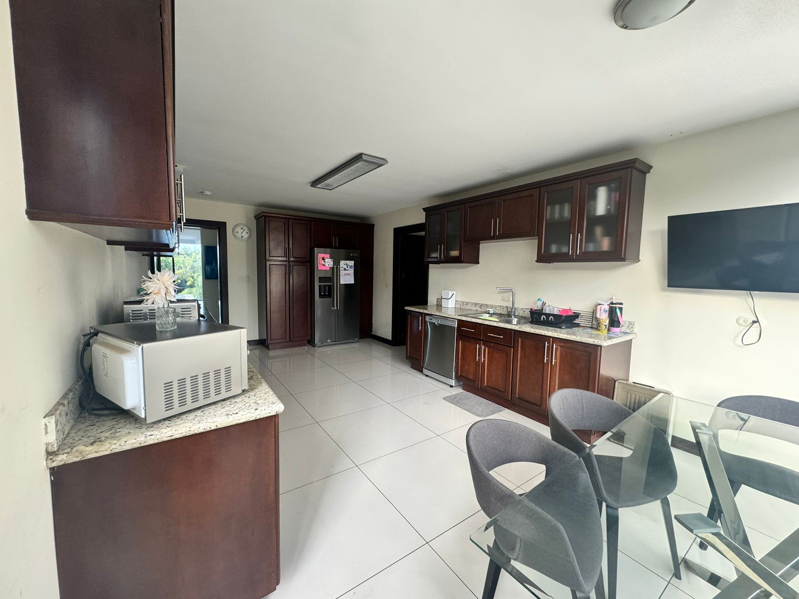 El acceso al apartamento debe registrar un código en el Lobby y al llegar al 4 piso encontrará su nuevo hogar, con 1/2 baño de visitas, espacio de sala, comedor y sala de tv grandes y cómodas con iluminación con altos ventanales, vistas al Oeste para disfrutar del atardecer desde cualquier de estos espacios. La cocina es amplia, con muebles de granito y madera finamente acabados, espacio para mesa redonda de desayuno.