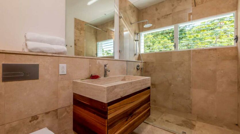 Con tres amplias habitaciones, cada una con su propio baño, esta casa ofrece privacidad y comodidad para todos los residentes. Además, una piscina infinita y una espaciosa terraza ofrecen el lugar perfecto para relajarse y disfrutar del clima tropical.