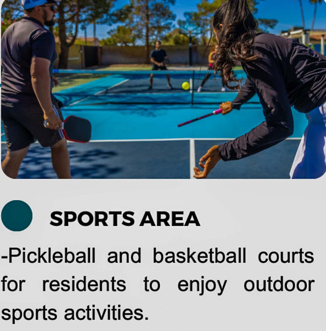 - Amenidades de Ensueño: Sumérgete en la área de piscina rodeada de exuberantes jardines, mantente activo en el gimnasio cubierto, participa en deportes en las zonas deportivas, y organiza inolvidables reuniones en las áreas de barbacoa. También podrás disfrutar de una sala de eventos, practicar yoga en un espacio dedicado y pasear a tu mascota por un cómodo camino.