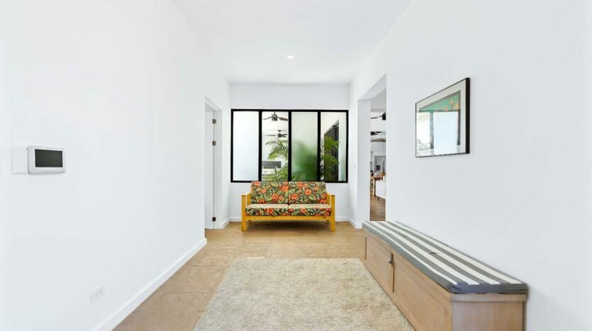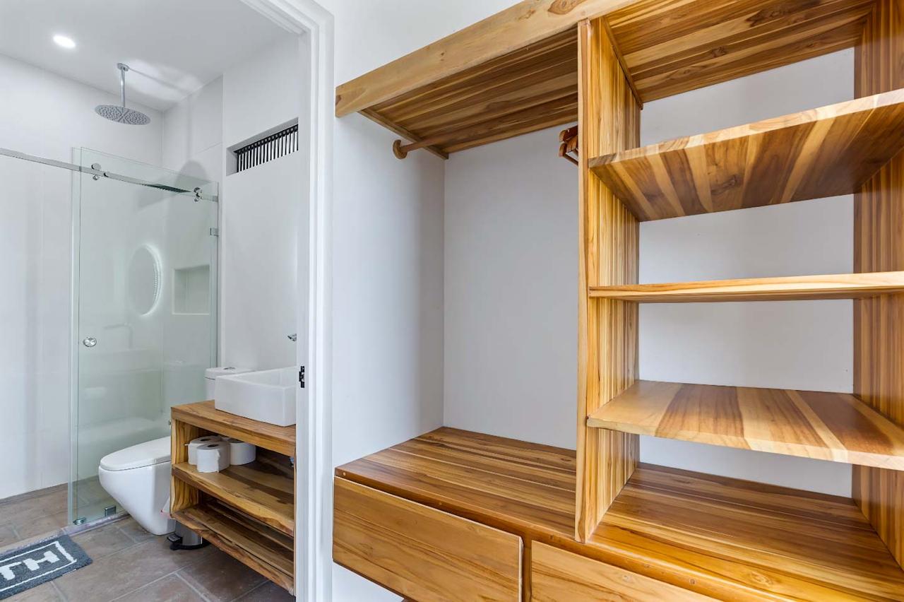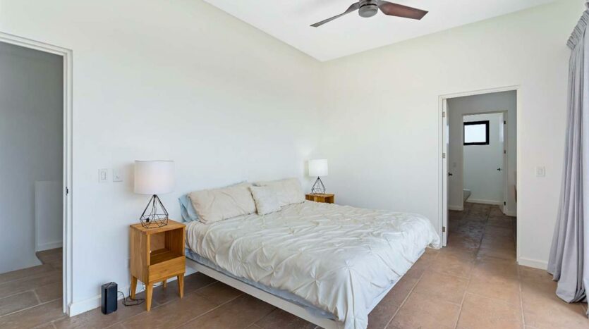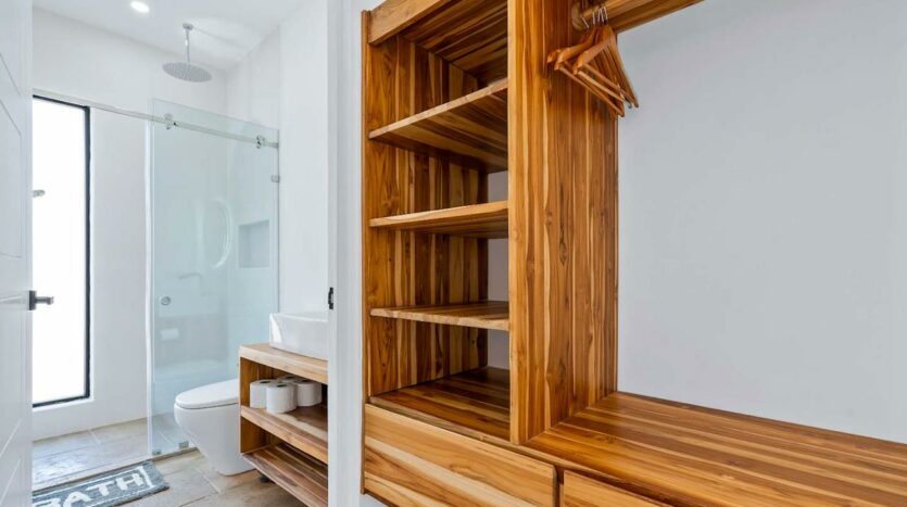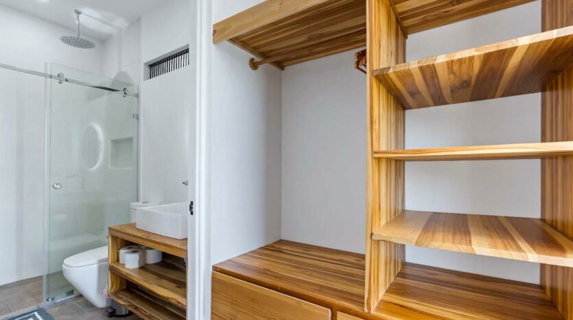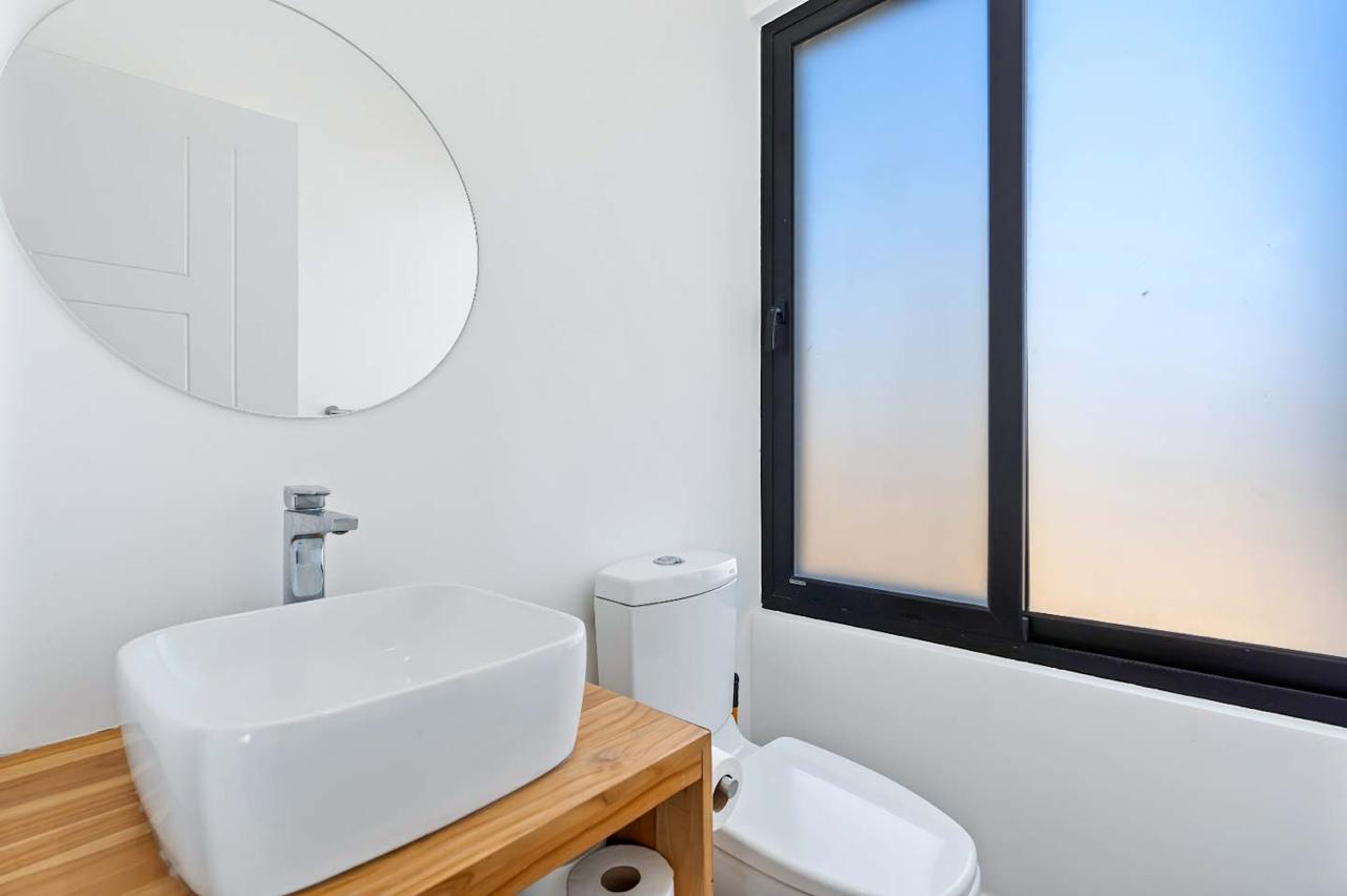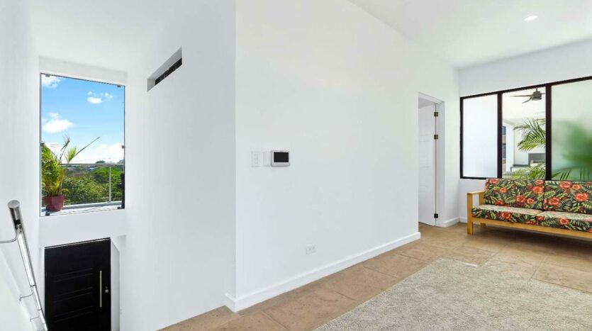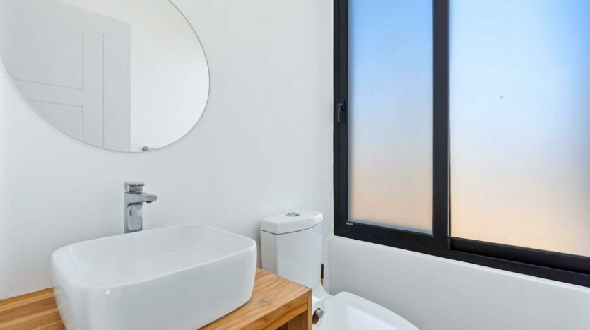 El nivel principal incluye dos cómodas habitaciones, cada una con su propio baño, además de un medio baño adicional para mayor comodidad. En el último nivel se encuentra una lujosa suite principal con techos altos, un amplio vestidor y un baño privado estilo spa, equipado con dos lavamanos y ducha independiente. Este nivel también cuenta con una gran terraza para disfrutar de las vistas panorámicas del océano.