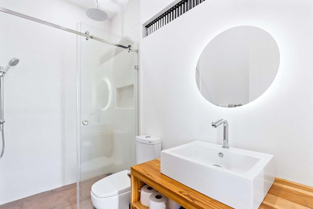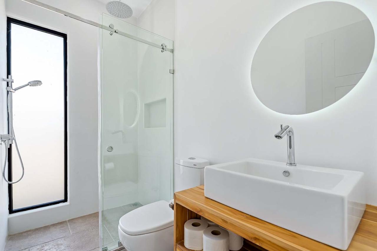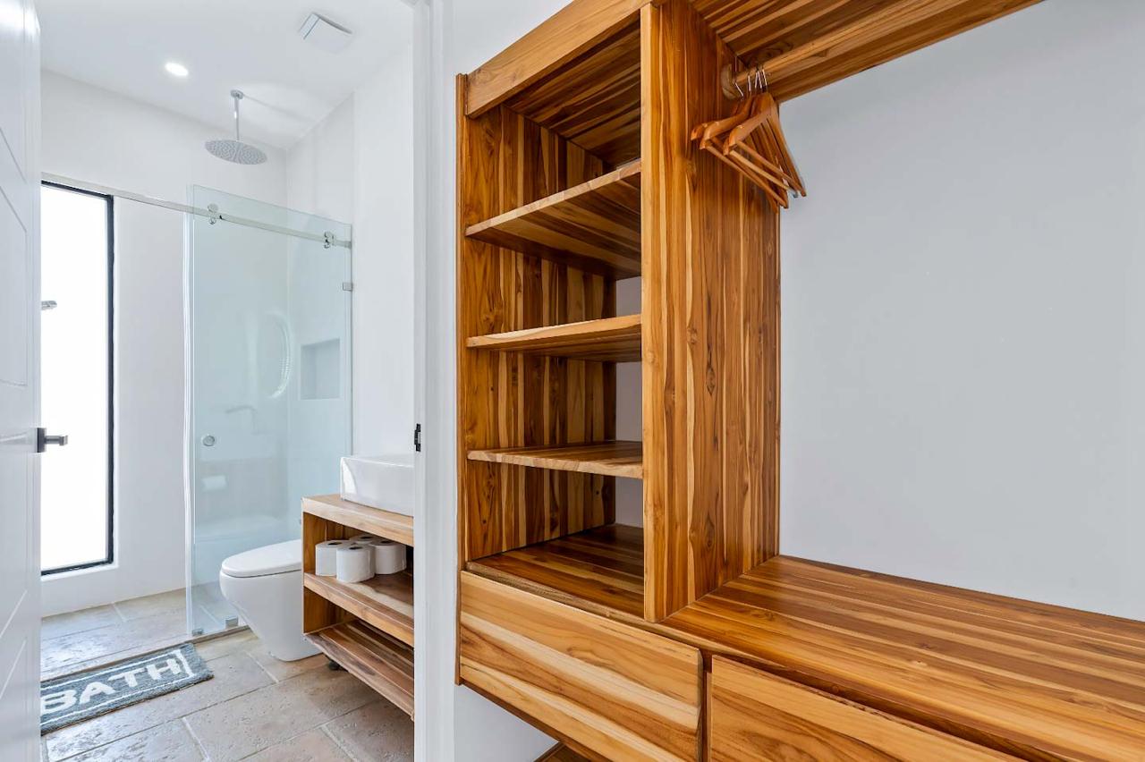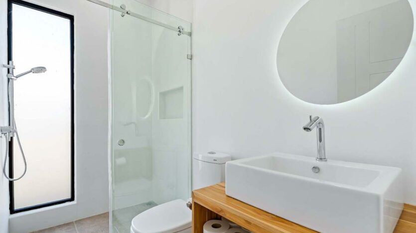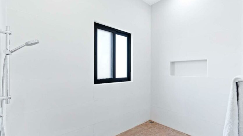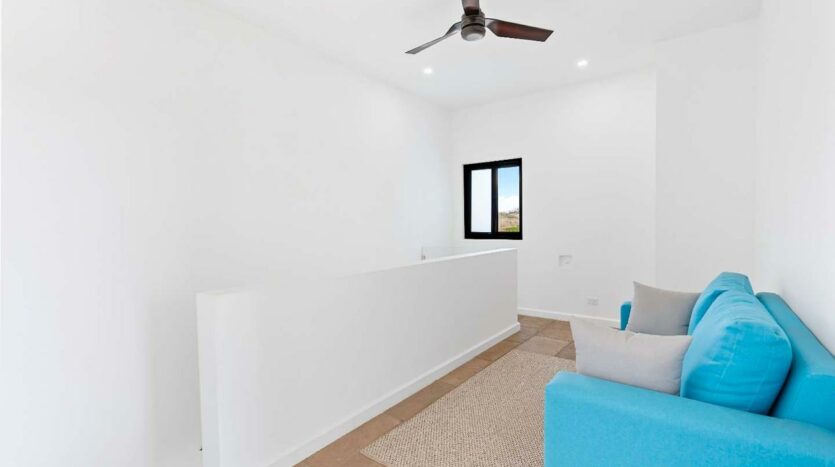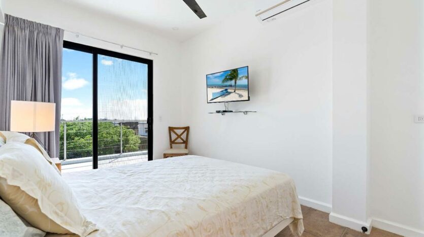 El nivel principal incluye dos cómodas habitaciones, cada una con su propio baño, además de un medio baño adicional para mayor comodidad. En el último nivel se encuentra una lujosa suite principal con techos altos, un amplio vestidor y un baño privado estilo spa, equipado con dos lavamanos y ducha independiente. Este nivel también cuenta con una gran terraza para disfrutar de las vistas panorámicas del océano.
